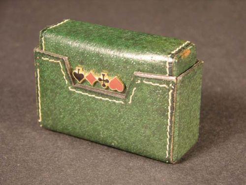 Leather playing card case - two piece - holds downsized cards. 3" x 2" x 1" Ex. cond.