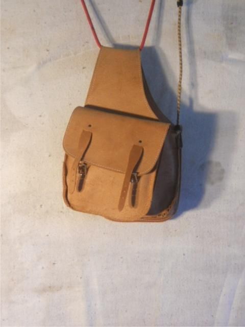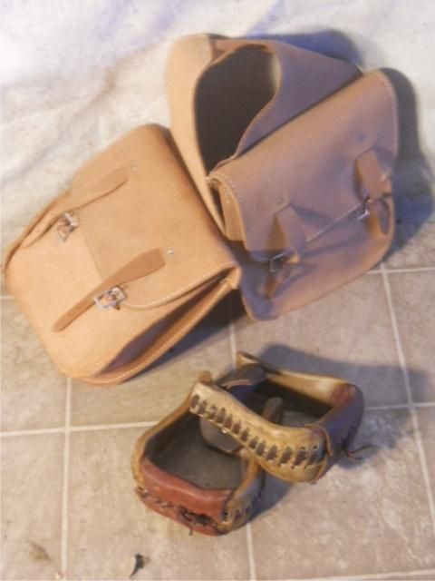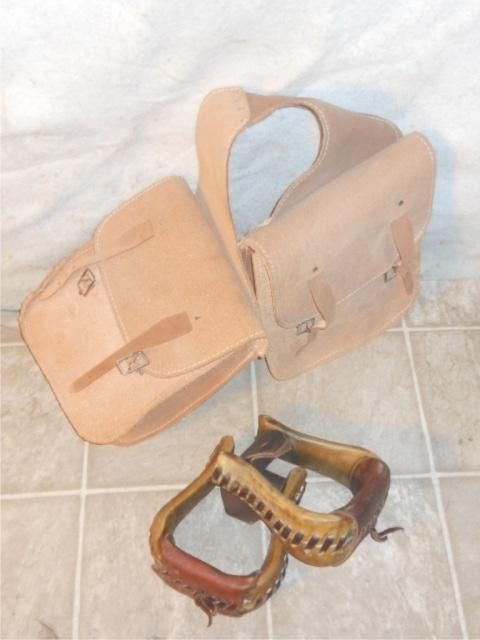 Leather Saddle Bag And Hide Wrapped Metal Stirrups