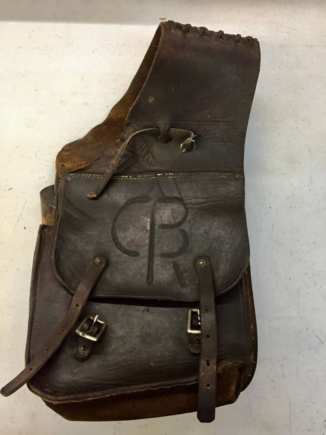 Description: Presented for sale in this lot is an old pair of leather saddlebags with hand stitched details and somebodies old ranch brand. Maker: Unknown. Approx. Age: Vintage. Size: 11-1/2”w x 40” long. Condition: Good for its age, normal wear expected. Please look closely at the pictures - they are an important part of our description. Shipping: There will be a $7 handling / packaging fee for shipping this lot. The actual cost of postage will be added on top of that.