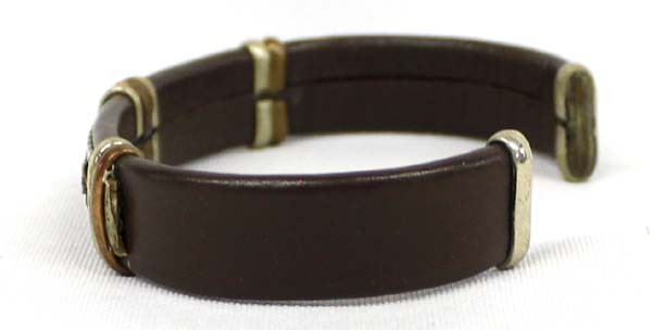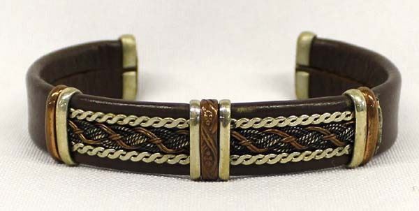 Leather Silver and Copper Cuff Bracelet, inside measures 7.25'' which includes the opening x .5''W
