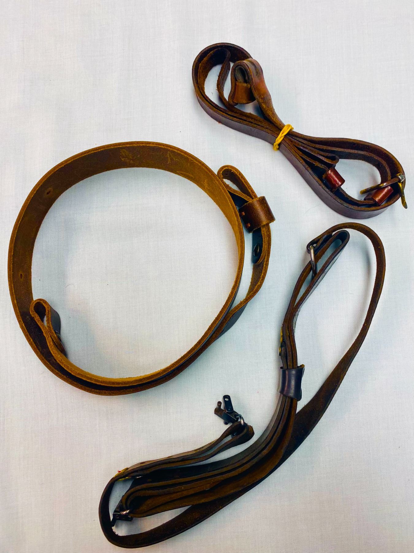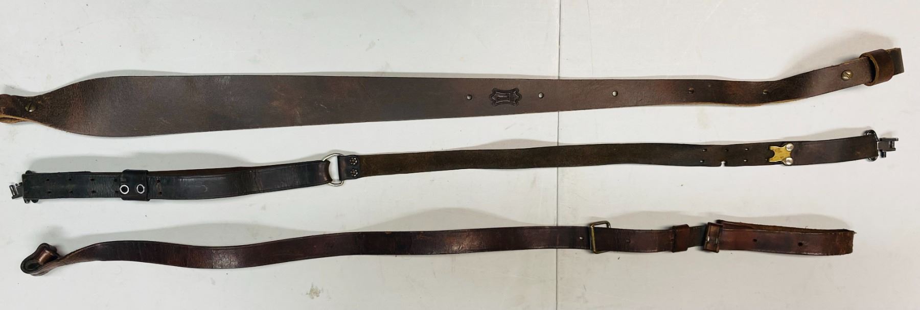 Three Leather slings - Two are original vintage Mikltary - One I think is a M1 and the other a Garand.