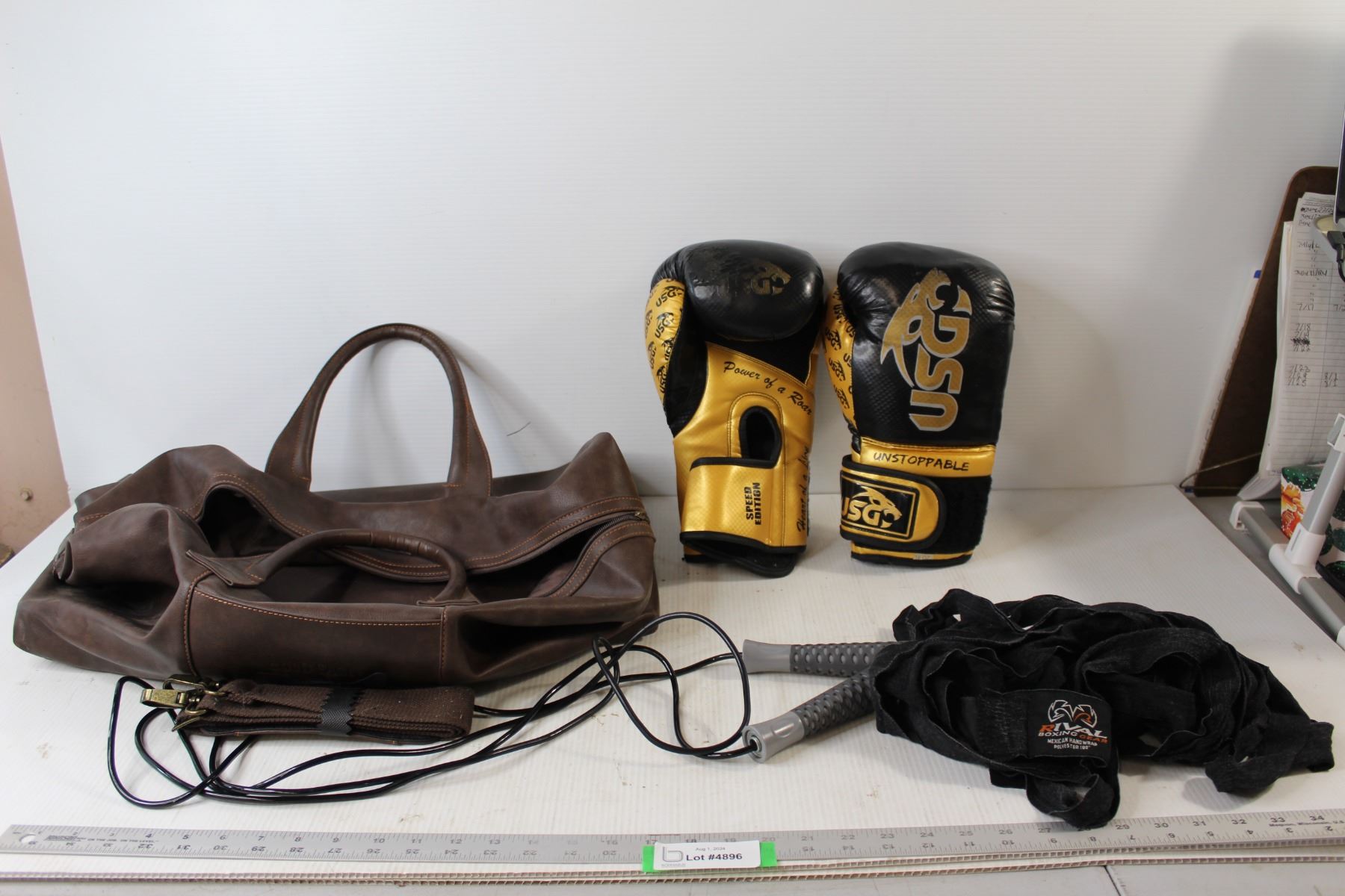 Leather Textured Duffel Bag, USG Boxing Gloves, Rival Handwraps, Skipping Rope