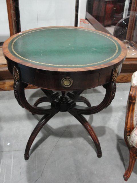 Leather Top Walnut Drum Table