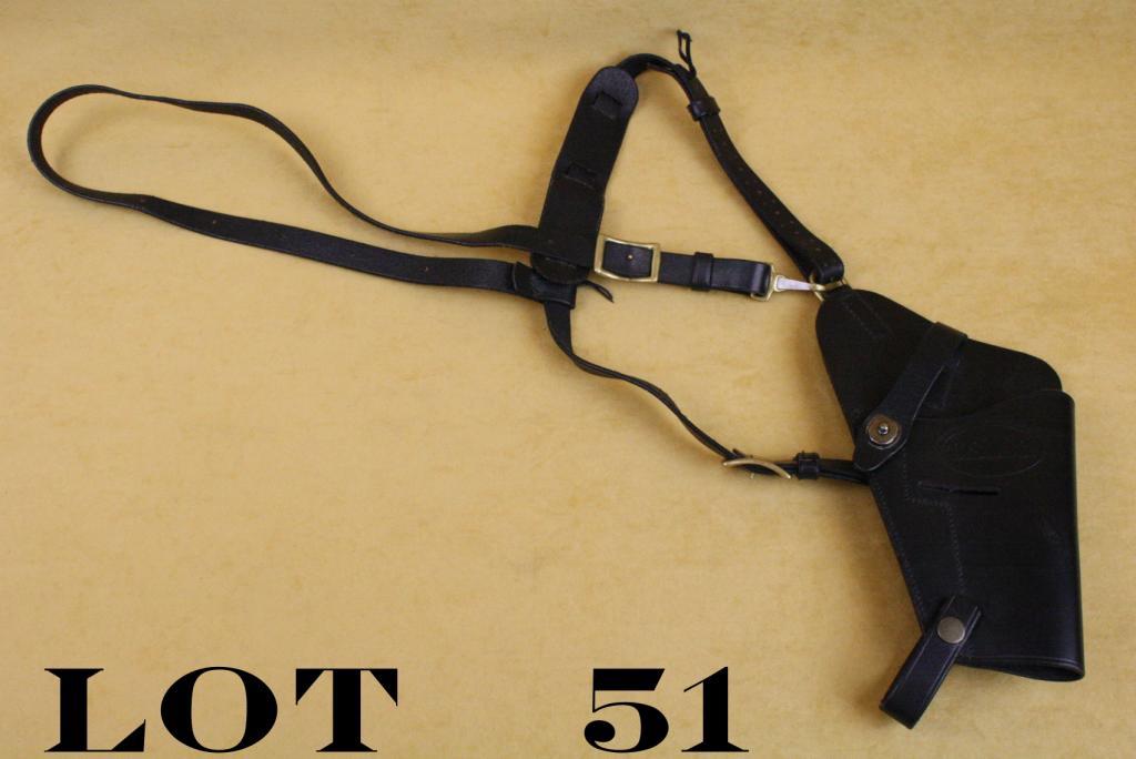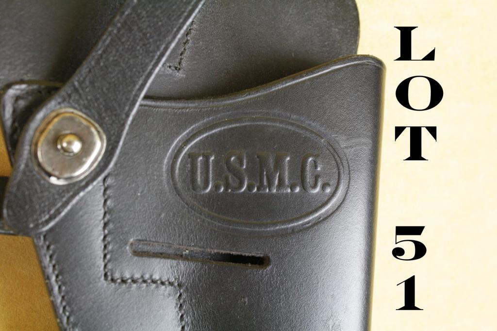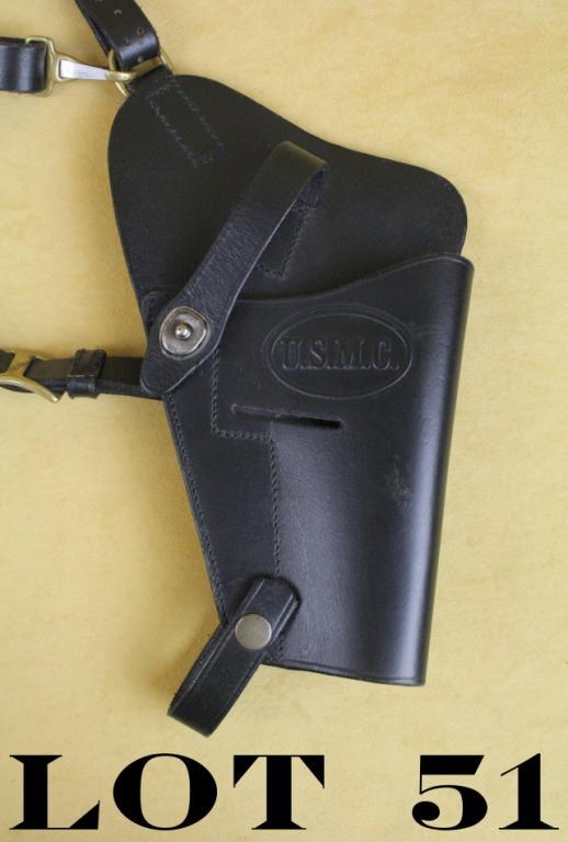 Leather USMC marked shoulder holster with straps in overall very good condition and made for a 1911 (Tanker’s holster). Est.: $50-$100.