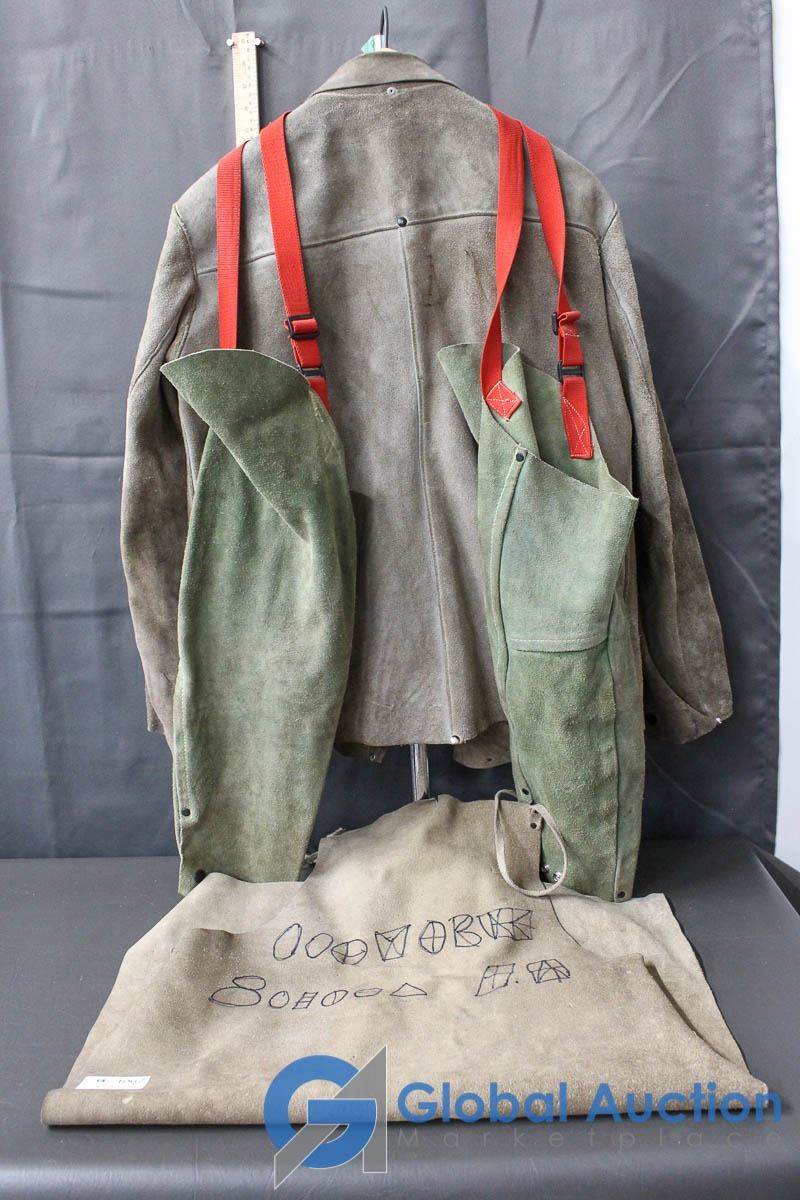 Leather Welding Jacket (size 44), Apron and Arm Protectors