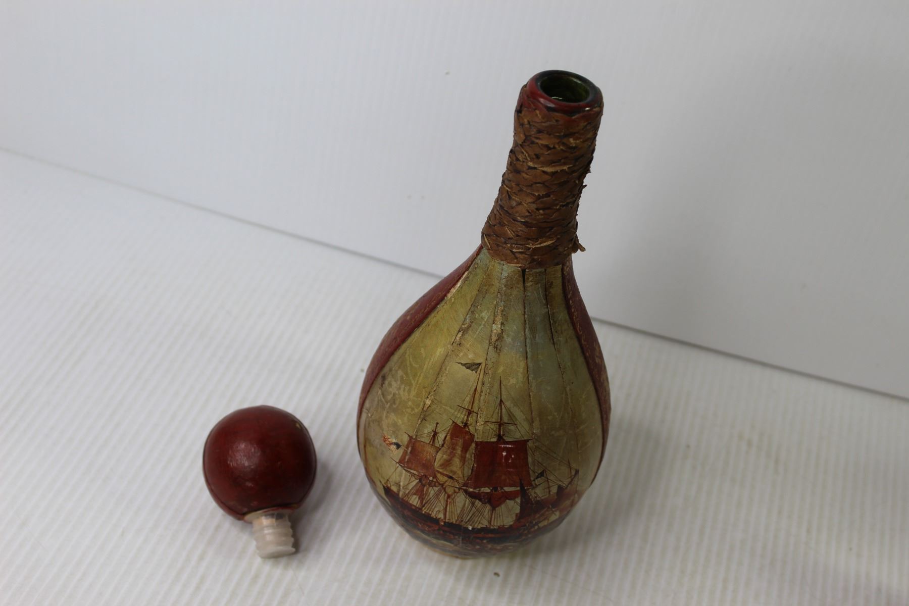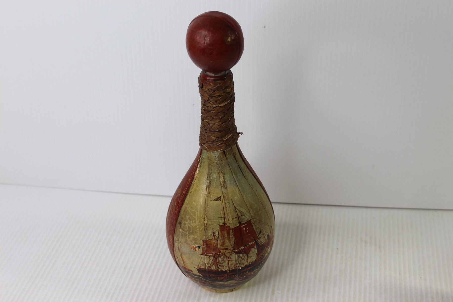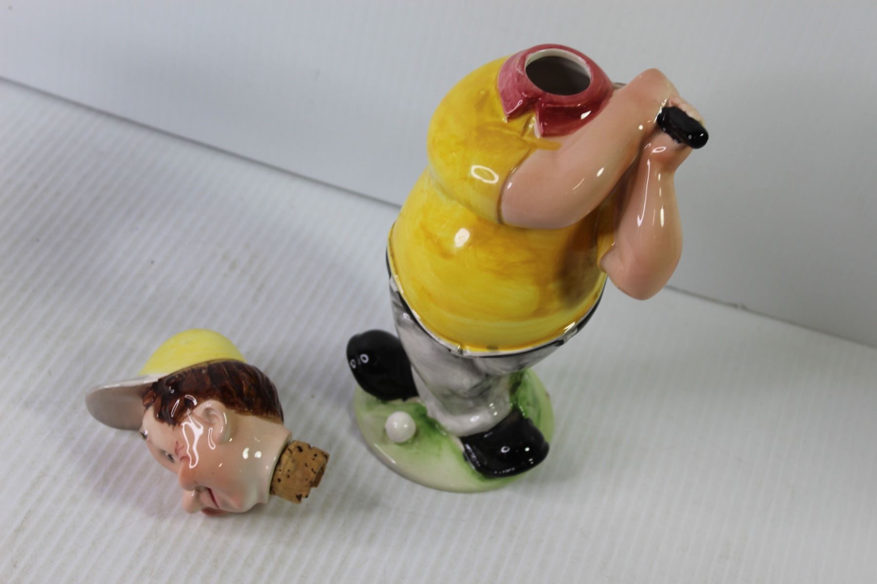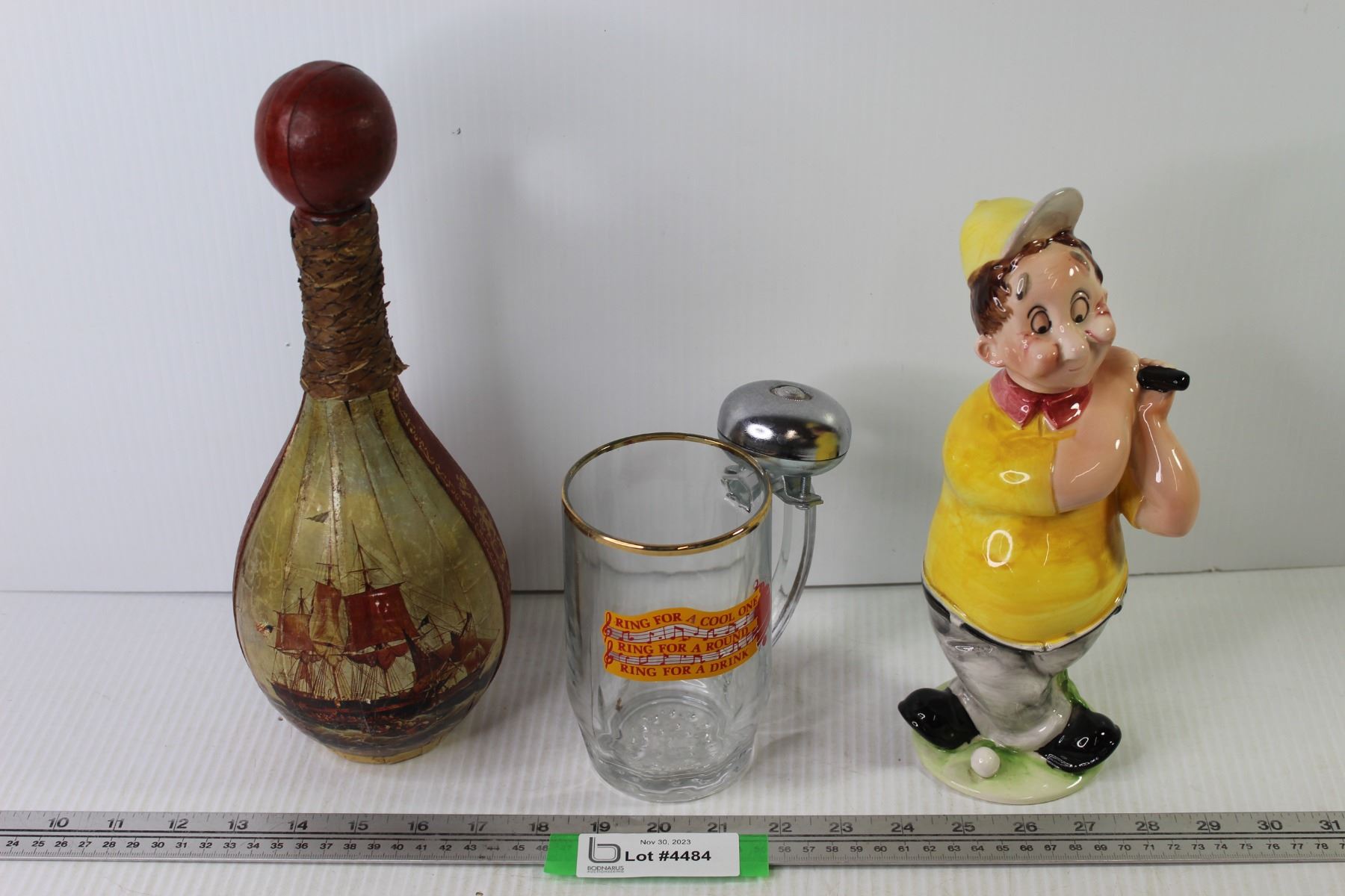 Leather Wrapped Decanter/Bottle - Ceramic Golfer Decanter - Glass w/Bell on Handle