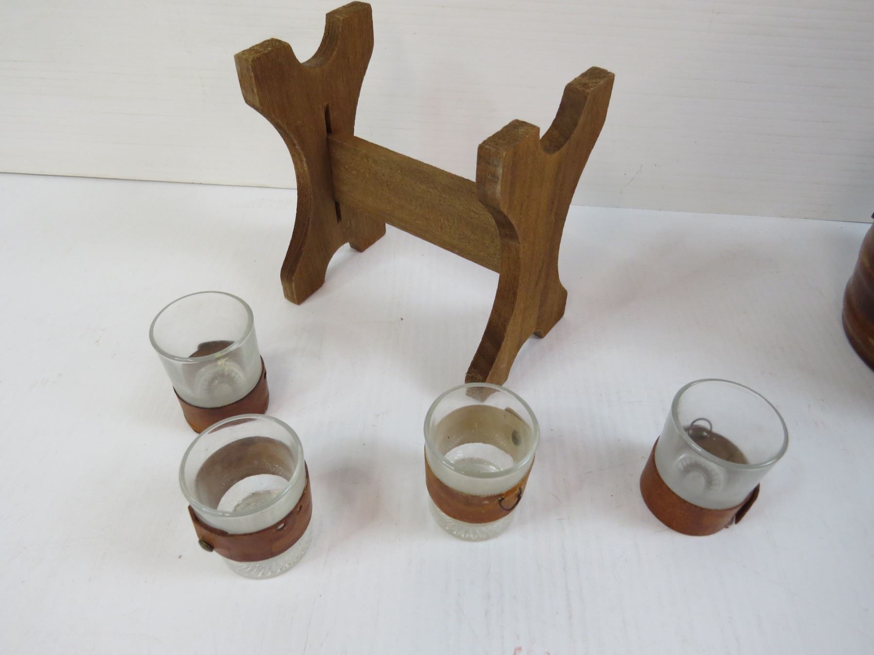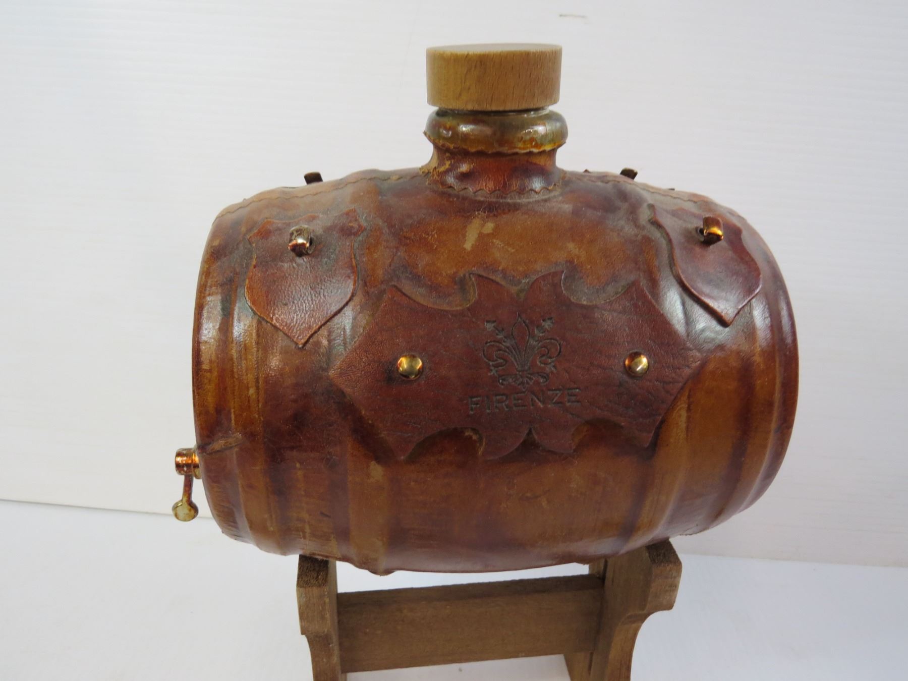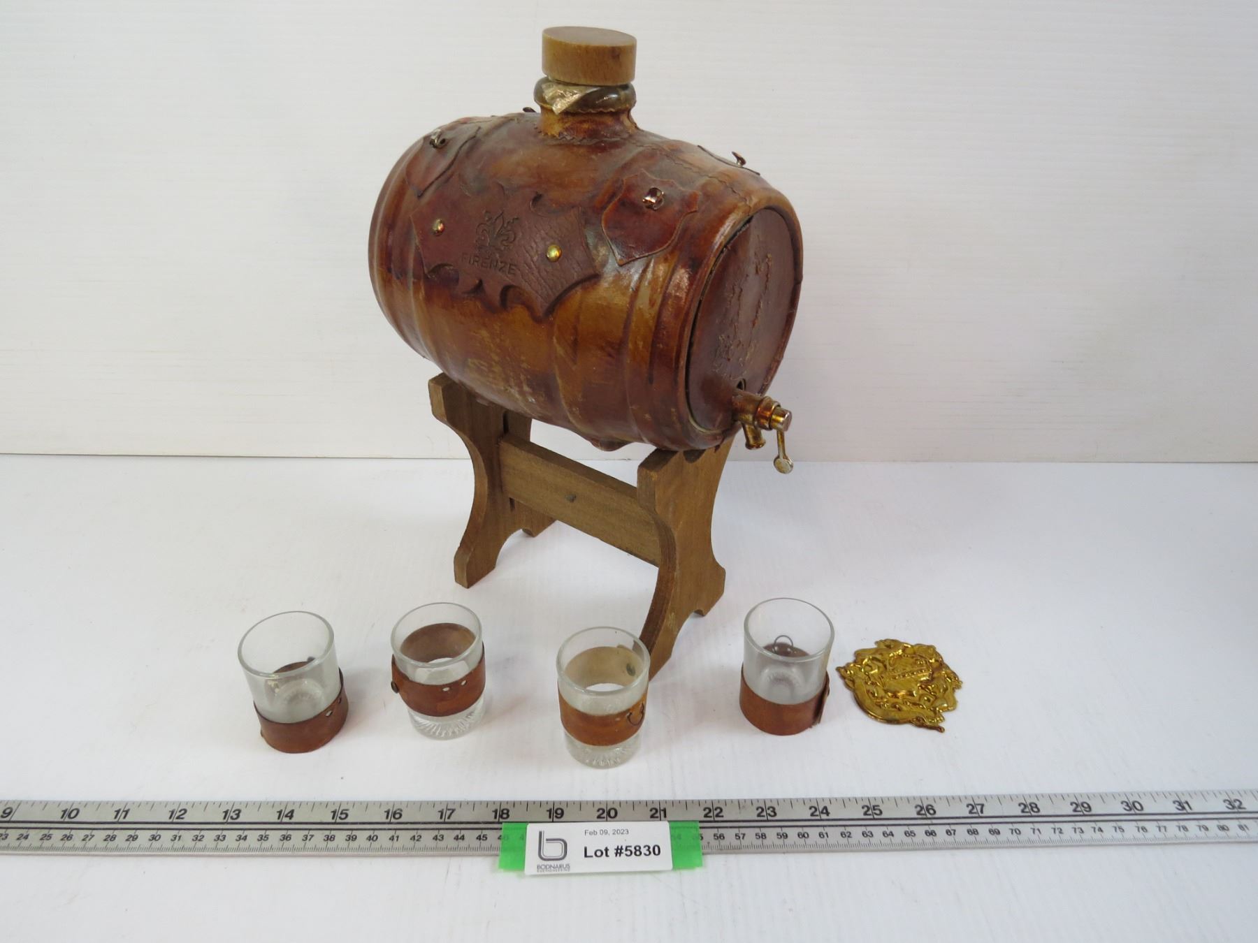 Leather Wrapped Decanter on Stand w/Shot Glasses
