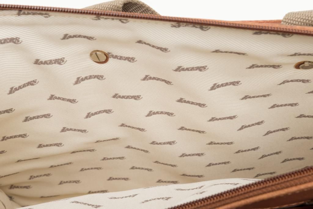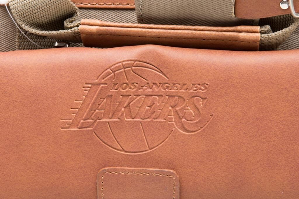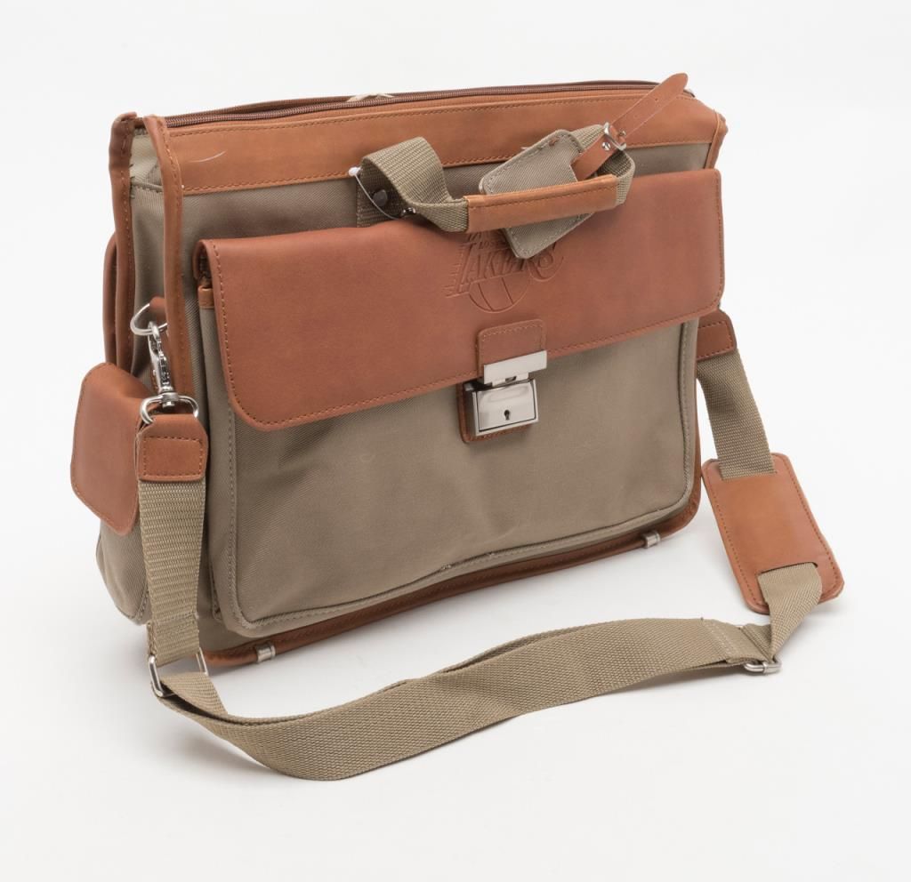 Leather and canvas briefcase in original wrap. Embossed Lakers logo of team. Est.: $50-$100