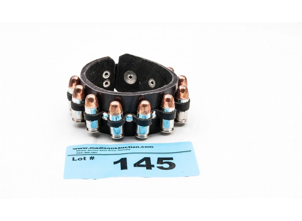 Leather bracelet with 45 caliber bullet accents
