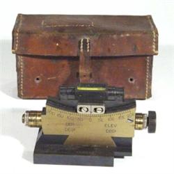 Leather cased military clinometer sight for a Vickers 303 machine gun, 18cm in length