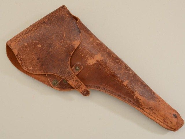 Leather flap holster for a Colt Model 1878 DA revolver, unmarked, in overall good condition with some scuffing and general wear. Est.: $100-$200.