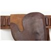 Leather lot consisting of a tooled Heiser holster with V. L. & A., Chicago marking and accompanying V.L. & A., Chicago-marked cartridge belt in overall very good condition; a double loop holster marked “Harry W. Reinhart, “The Sporting GoodsStore, Scranton, PA” with unmarked cartridge belt in fair to good condition and a nice double loop stock catalog holster in very good condition. From the estate of Joe Kiser. Est.: $300-$600.