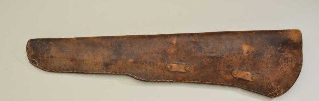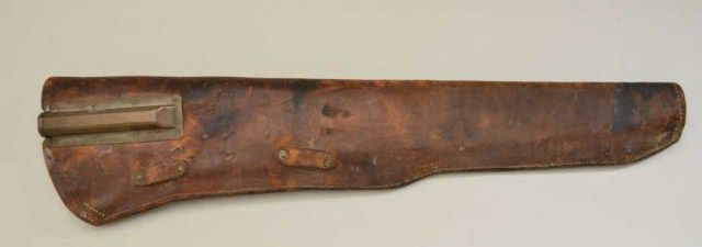 Leather scabbard for M1 Garrand marked “L95” on reverse, brass bolt protector, no straps. Fair to good condition. Est.;$75-$150.