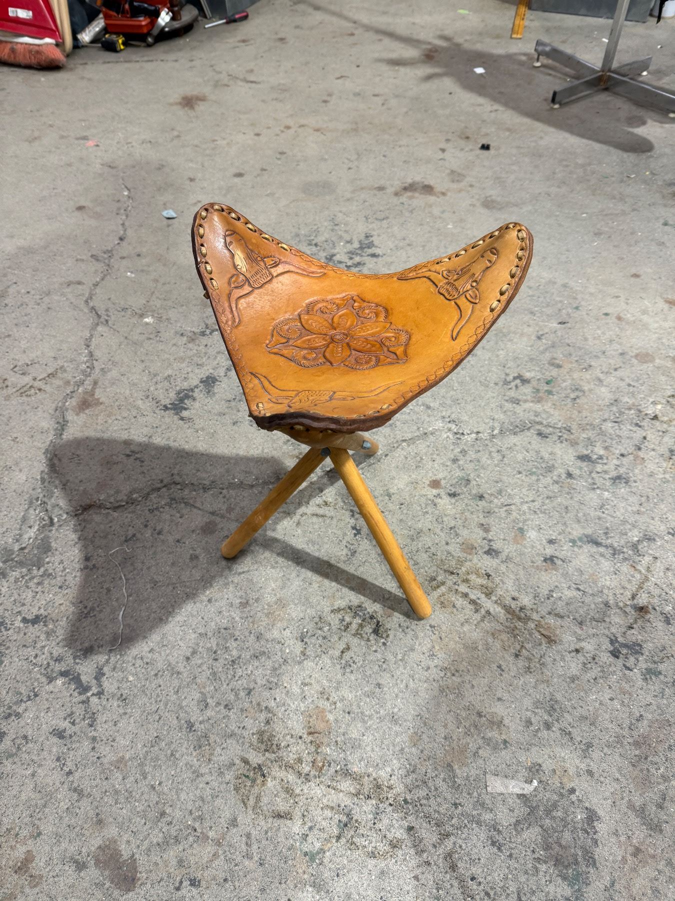 Leather seat folding stool