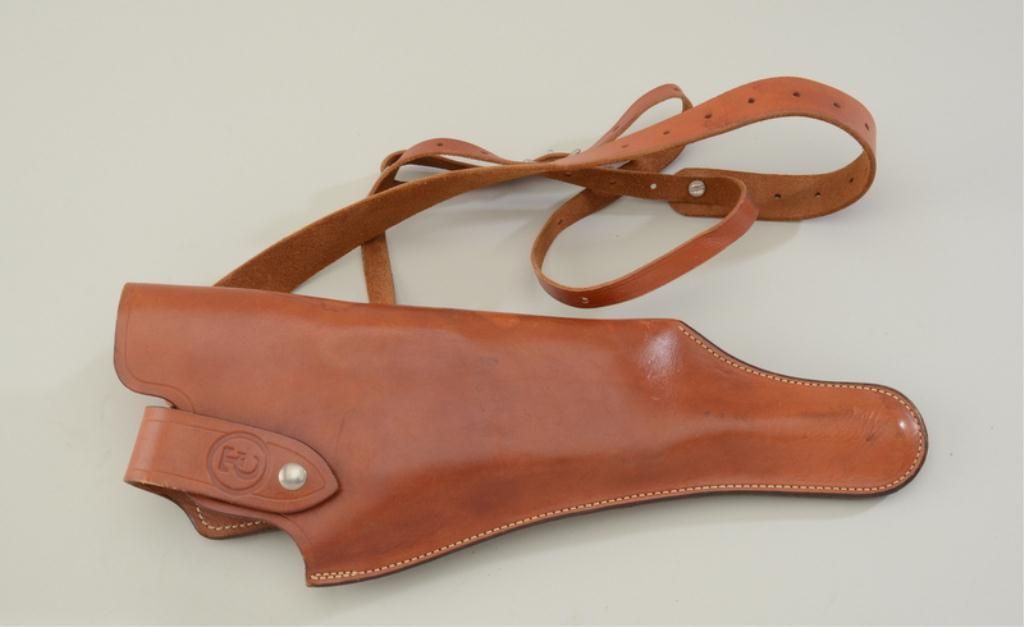Leather shoulder holster for a Thompson Center Contender with strap and in overall very good condition. Est.: $25-$50.