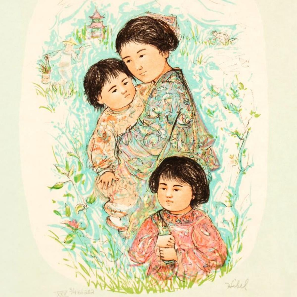 "Leaving the Garden" is a limited edition lithograph on paper, numbered and hand signed by Edna Hibel. Includes Certificate of Authenticity! Measures approx. 17.5" x 22" (with border), 11" x 15" (image). Reference #: 200028.