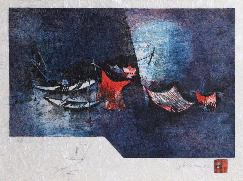 Lebadang, Boat Race, Lithograph with Remarque Drawing