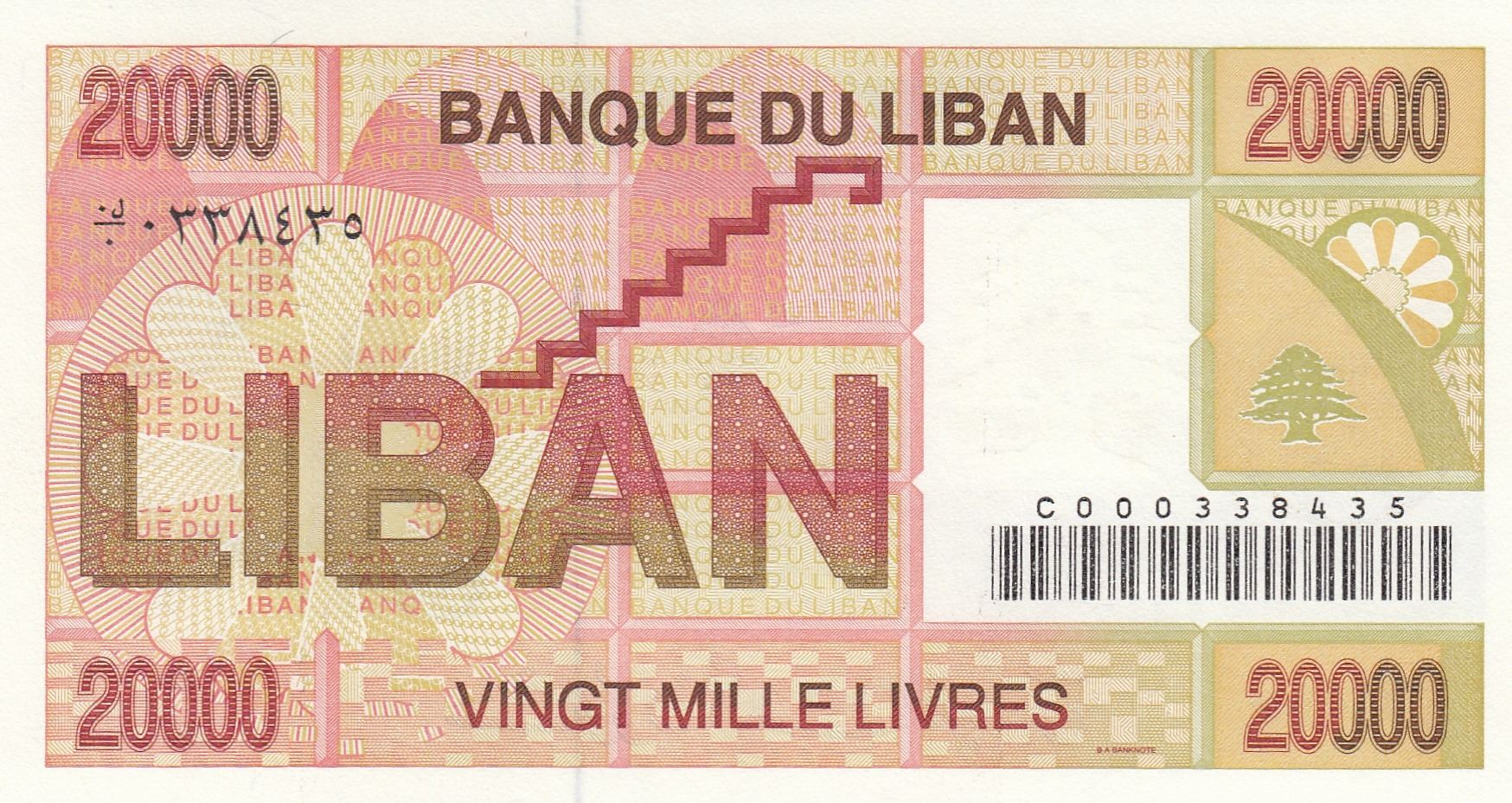 Lebanon, 20.000 Livre, 1994, p72br/serial number: C 000338435