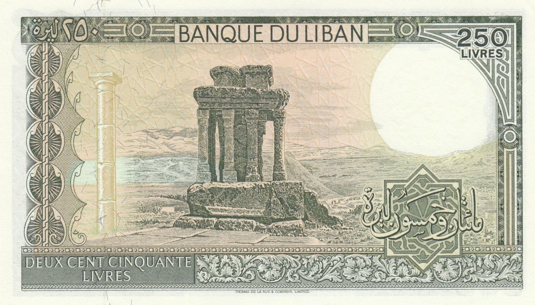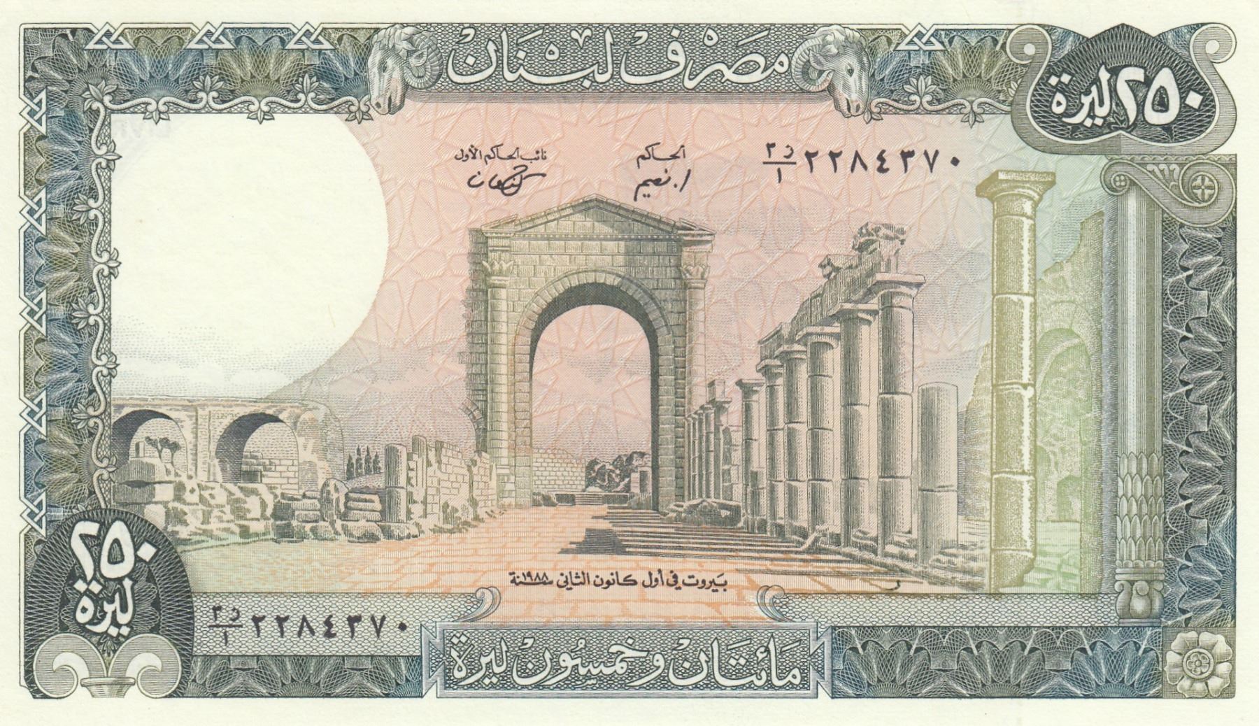 Lebanon 250 Livres, 1986, UNC, p67ebr/serial number: 25/12284370