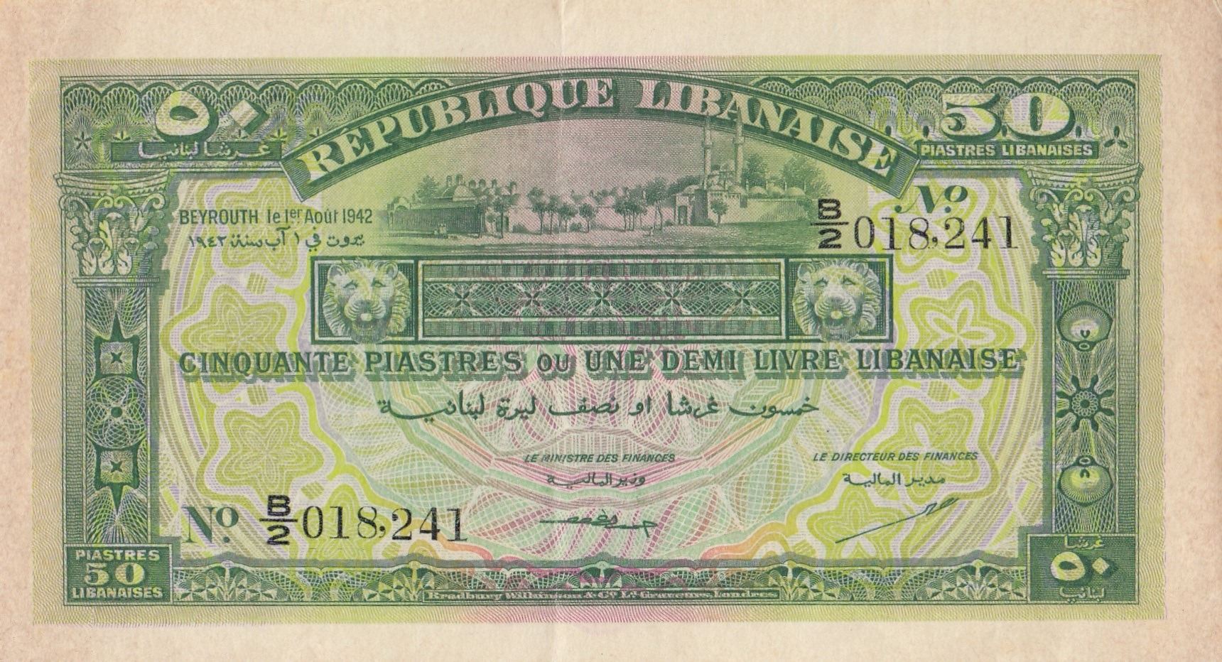 Lebanon, 50 Piastres, 1942, AUNC (-), p37br/serial number: B/2 018241