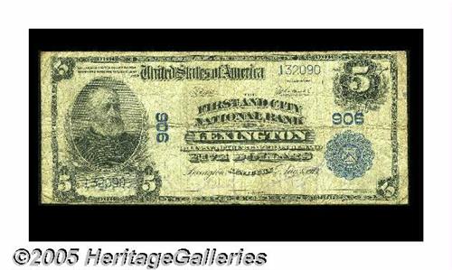 <B>Lebanon, KY</B></I> - $10 1902 Plain Back Fr. 631 <B>The Marion NB</B></I> Ch. # 2150 <B>Fine</B></I><BR><B>Lexington, KY</B></I> - $5 1902 Plain Back Fr. 604 <B>The First & City NB</B></I> Ch. # 906 <B>Very Good+</B></I><BR><B>Owensboro, KY</B></I> - $5 1929 Ty. 1 <B>The National Deposit Bank</B></I> Ch. # 4006 <B>Good-Very Good