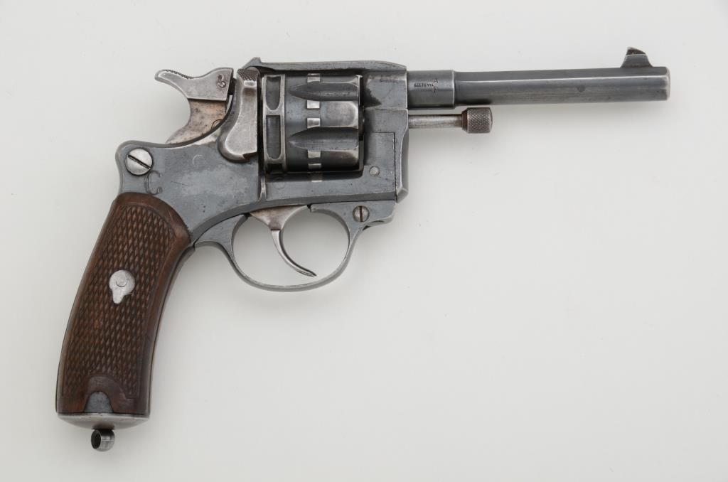 Lebel Model 1892 Civilian DA revolver, 8mm cal., 4-3/4” barrel, blue finish, checkered wood grips,