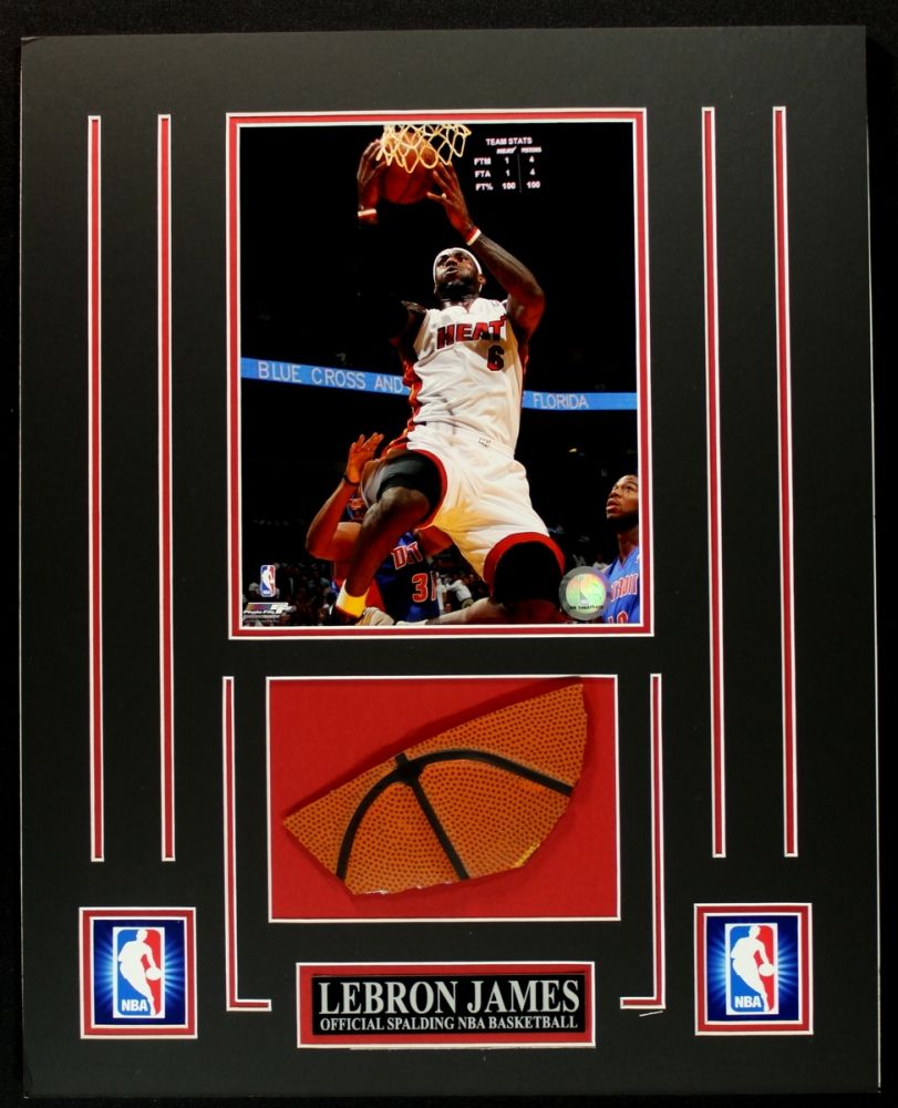 Lebron James Heat 16x20 Custom Display with Piece of Basketball