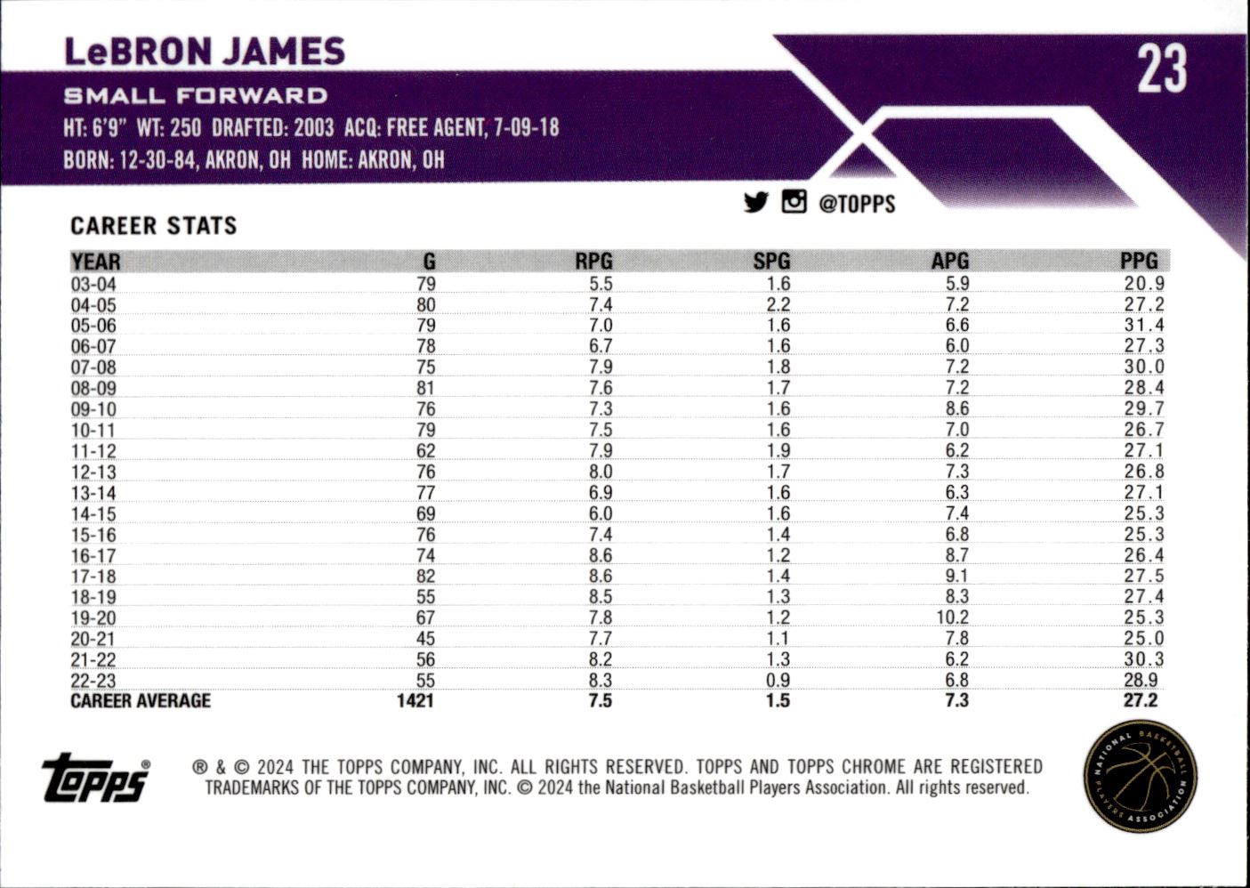 Lebron James Pink Refractor 2023-24 Topps Chrome #23