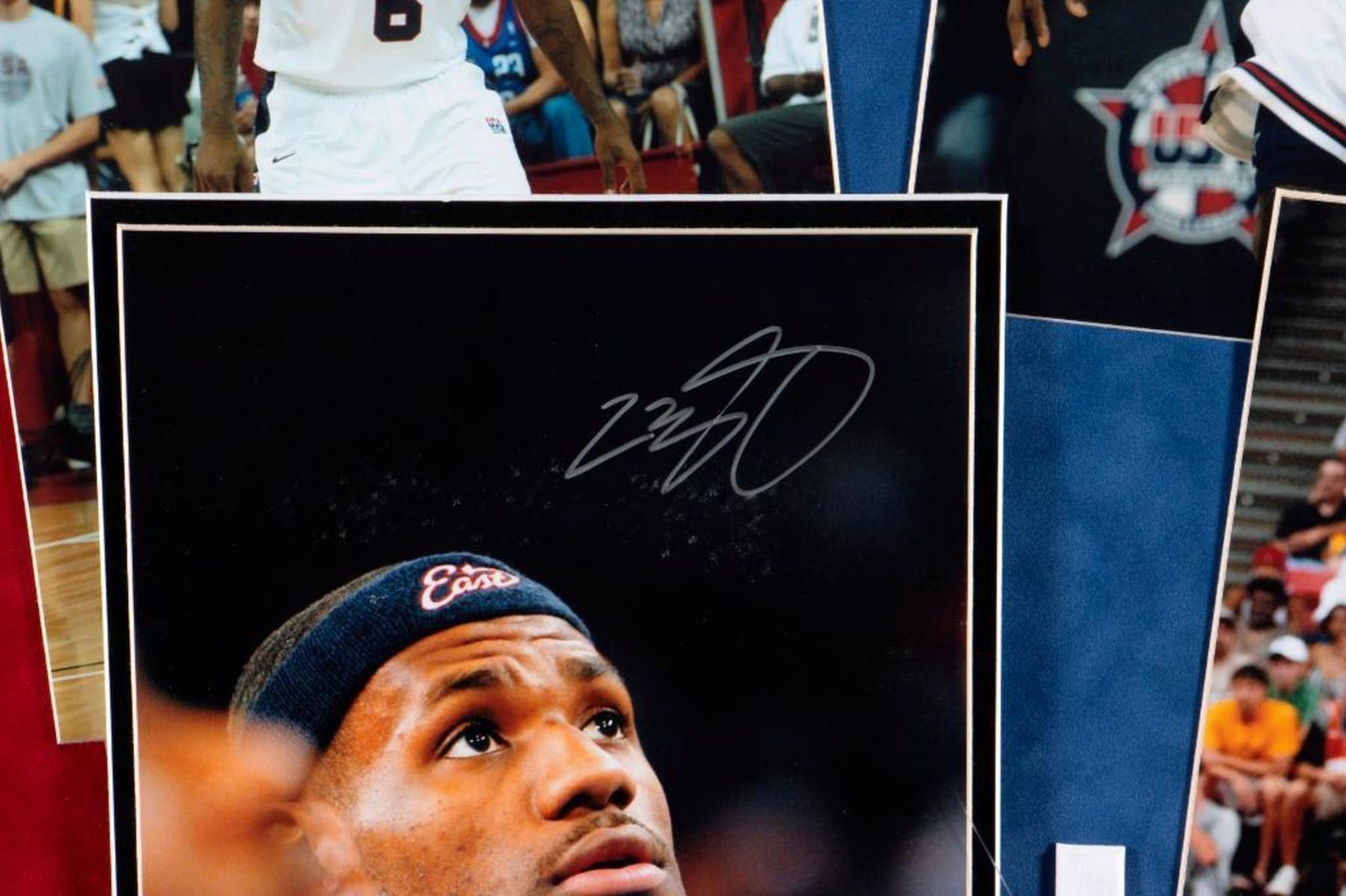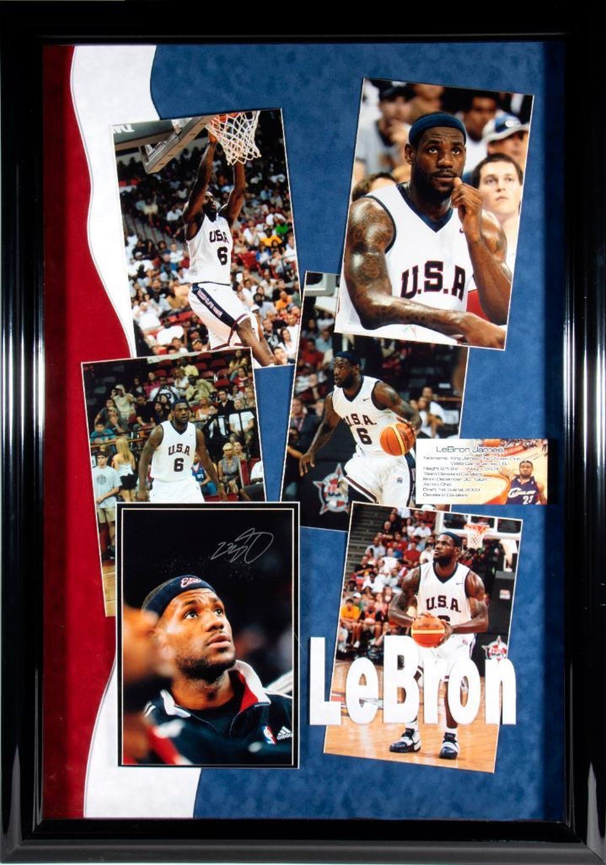 Lebron James U.S. Olympic framed images (one signed by Lebron James). Frame: 39 1/2 x 27 1/2 inches. Depth: 1 1/2 inches.