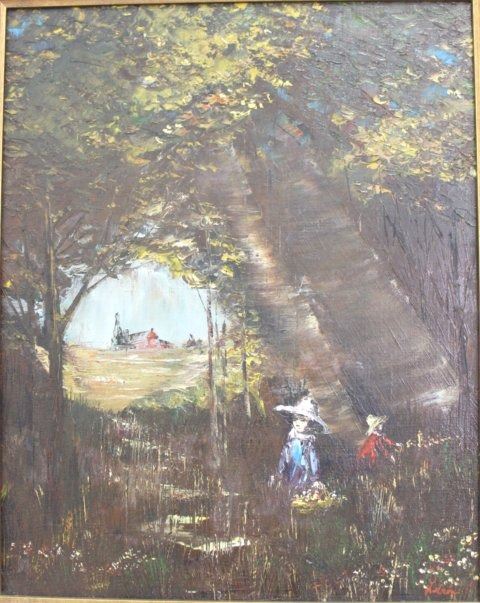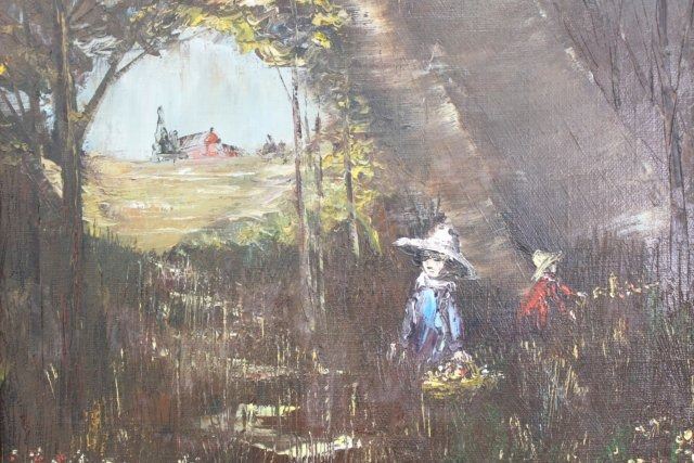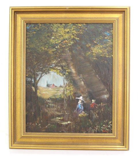 Oil on canvas. Signed lower right. Approx. 20" H x 16" W unframed, 21 1/2" H x 25 1/2" W framed. (6095)