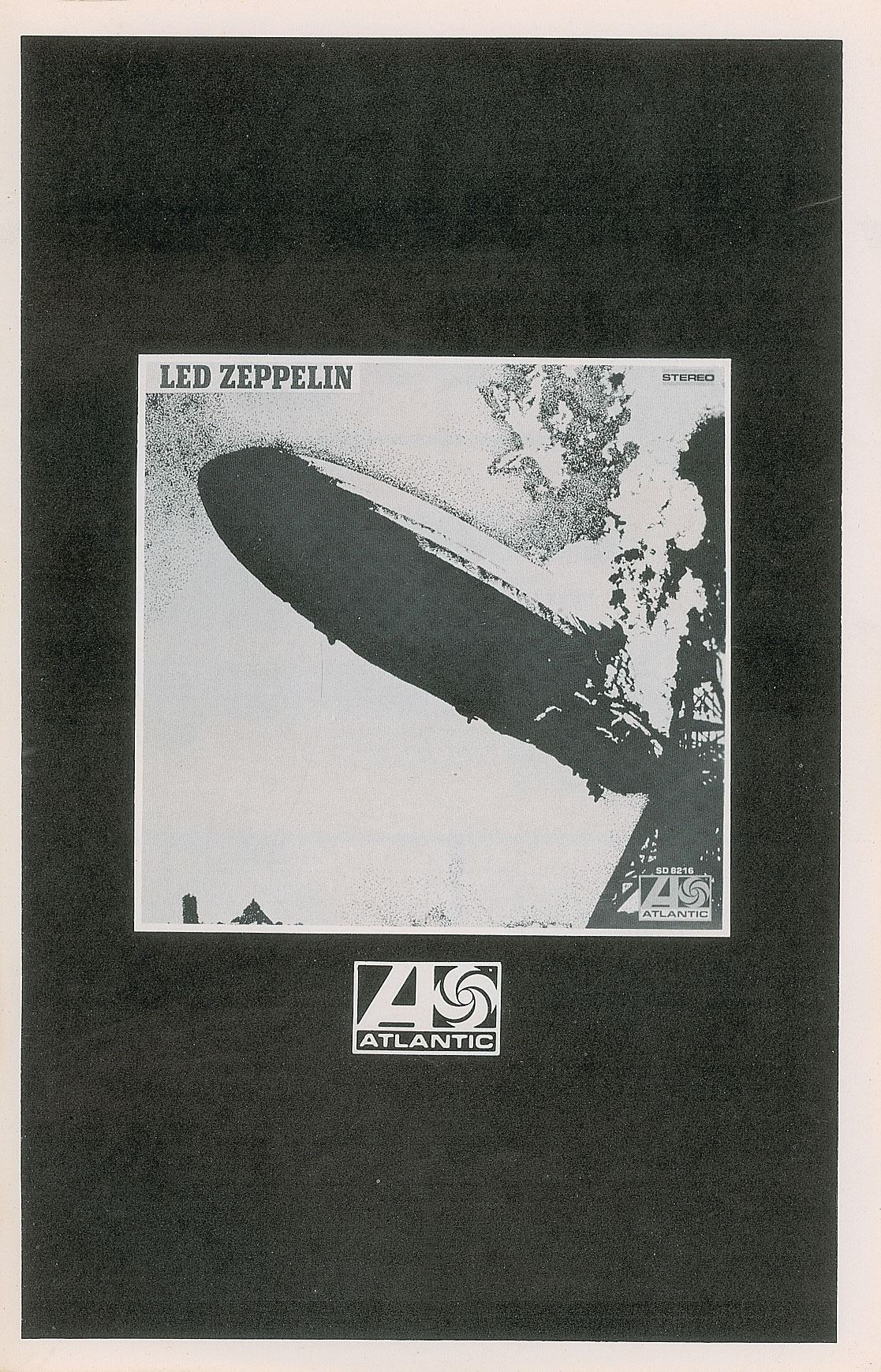 Concert program for Led Zeppelin's first headlining shows at New York's legendary Fillmore East on May 30-31, 1969, only months after having premiered at the venue as an opening act for Iron Butterfly. The program measures 5.5 x 8.5 and includes a photo and full-page biography of the band, a large advertisement for Led Zeppelin's debut album, as well as many other interesting period advertisements, including full page announcements for Tommy, The Who's new album, and the Newport Folk Festival, which lists an assortment of future Rock and Roll Hall of Fame artists. In fine condition, with a paperclip impression to the right edge of the front cover.