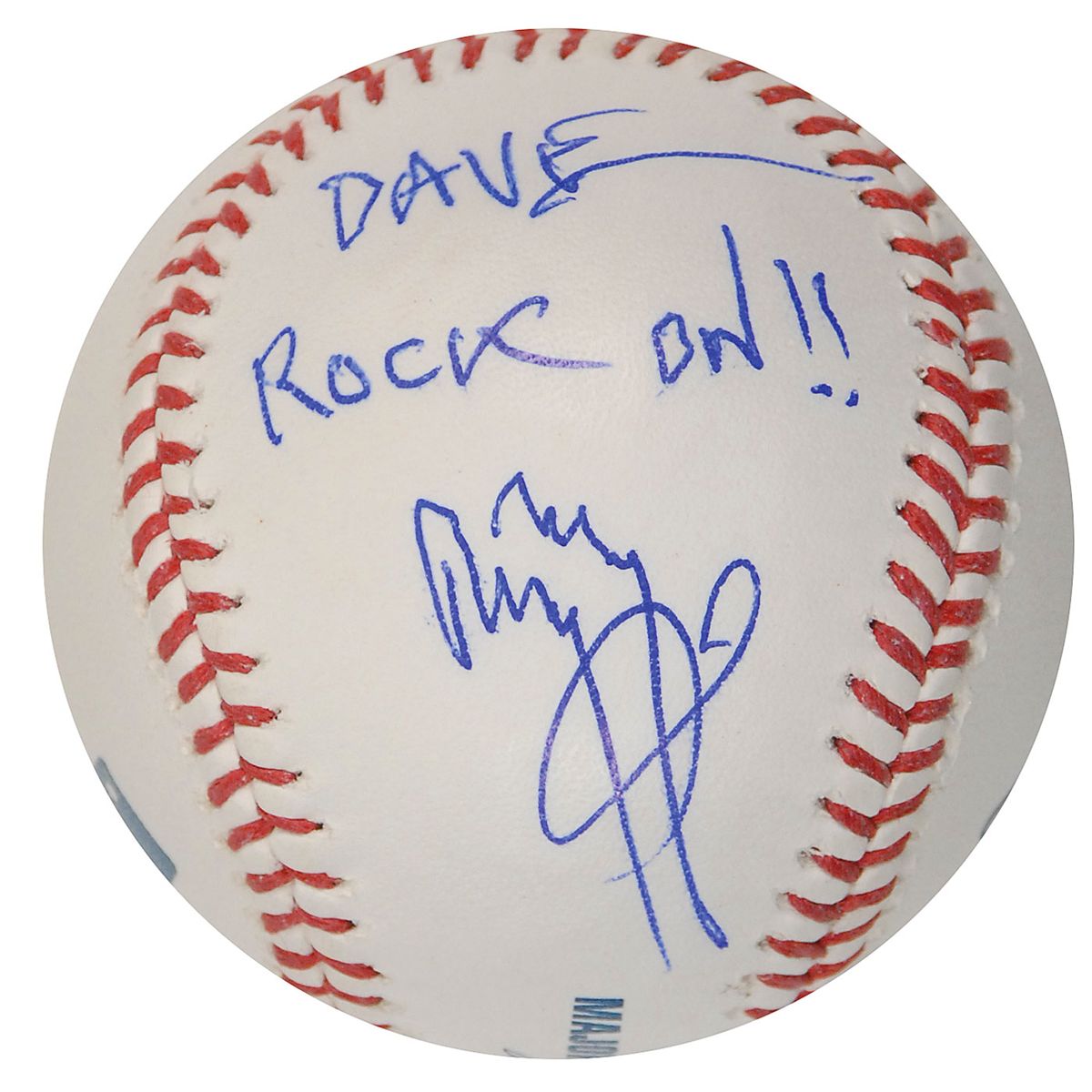 Official Rawlings Major League baseball signed and inscribed in blue ballpoint on a side panel, “Dave, Rock On!! Jimmy Page.” In fine condition.