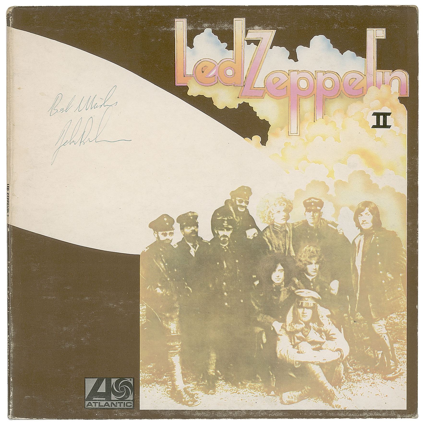 Led Zeppelin II album signed on the front cover in blue ballpoint, "Best Wishes, John Bonham." In fine condition, with light scuffing. The record is included.