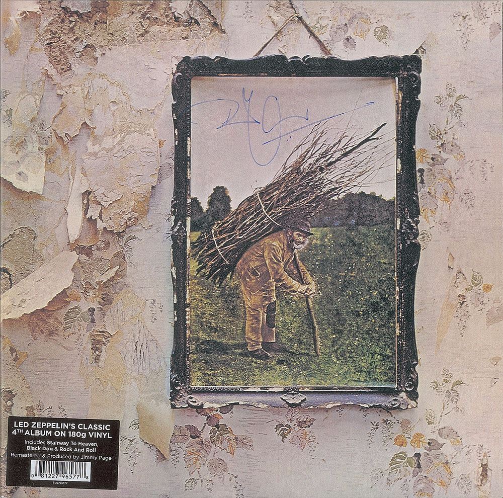 Led Zeppelin IV album (UK re-issue) signed on the front cover in blue felt tip by Robert Plant. In fine condition. The record is included. Accompanied by a certificate of authenticity from Tracks