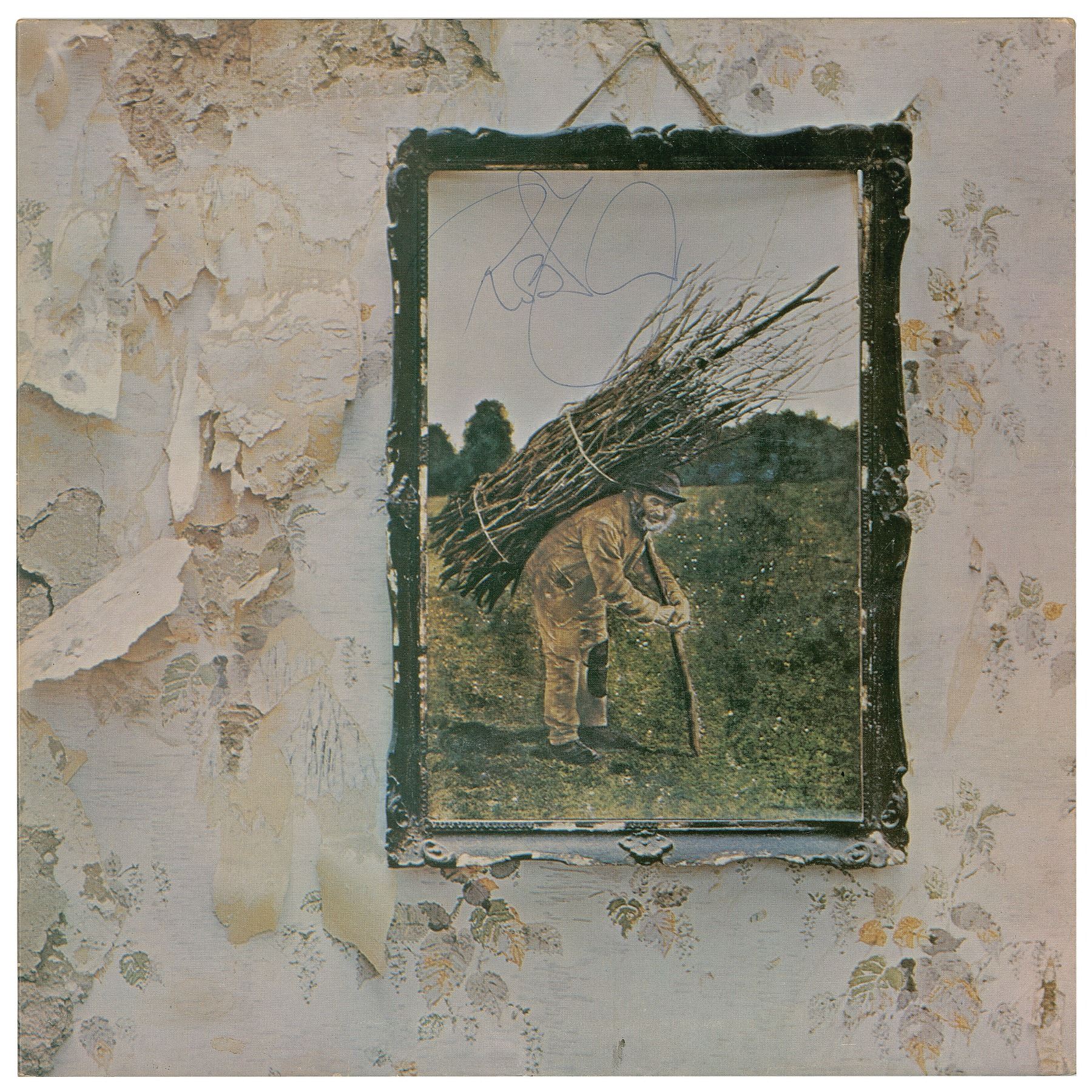 Untitled 'Led Zeppelin IV' album signed on the front cover in black ballpoint by lead singer Robert Plant. In fine condition. The record is not included.