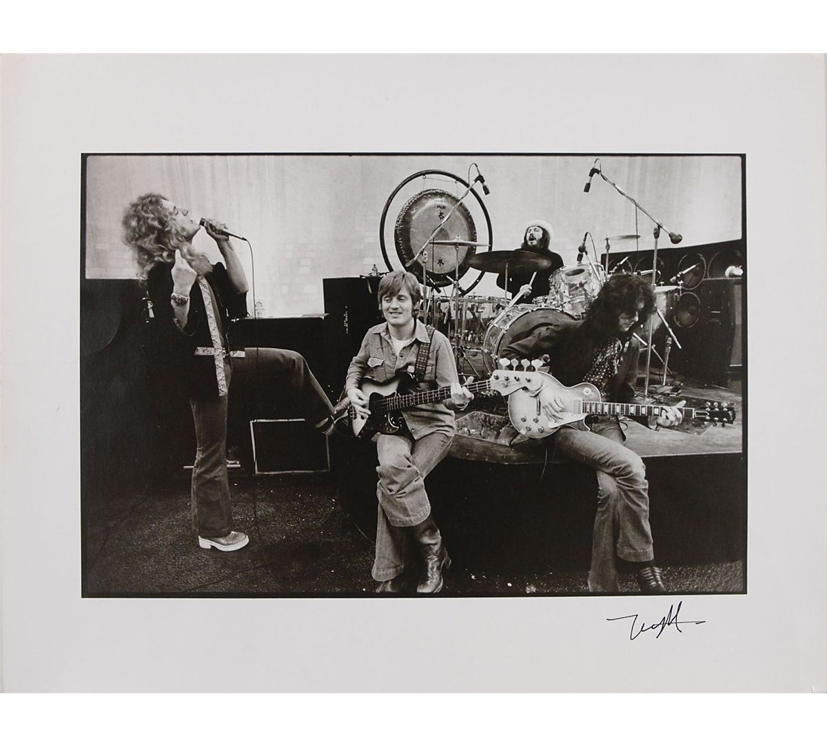 Great 14 x 11 photo of the band rehearsing, taken by their official photographer Neil Preston. This reprint is signed in the lower border in black ink by Preston and bears a Preston photo credit label on the reverse. In fine condition, with a couple creases to right border.