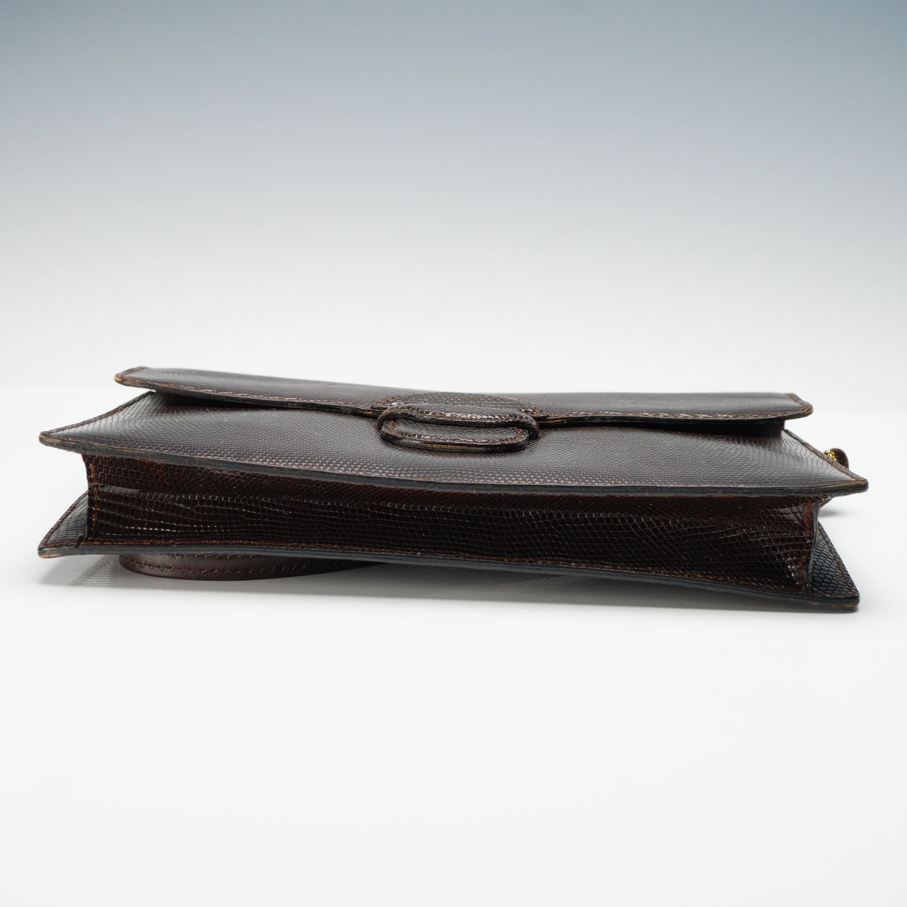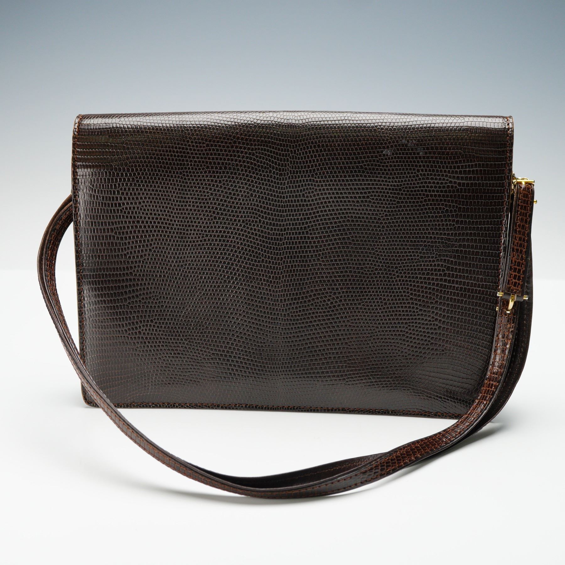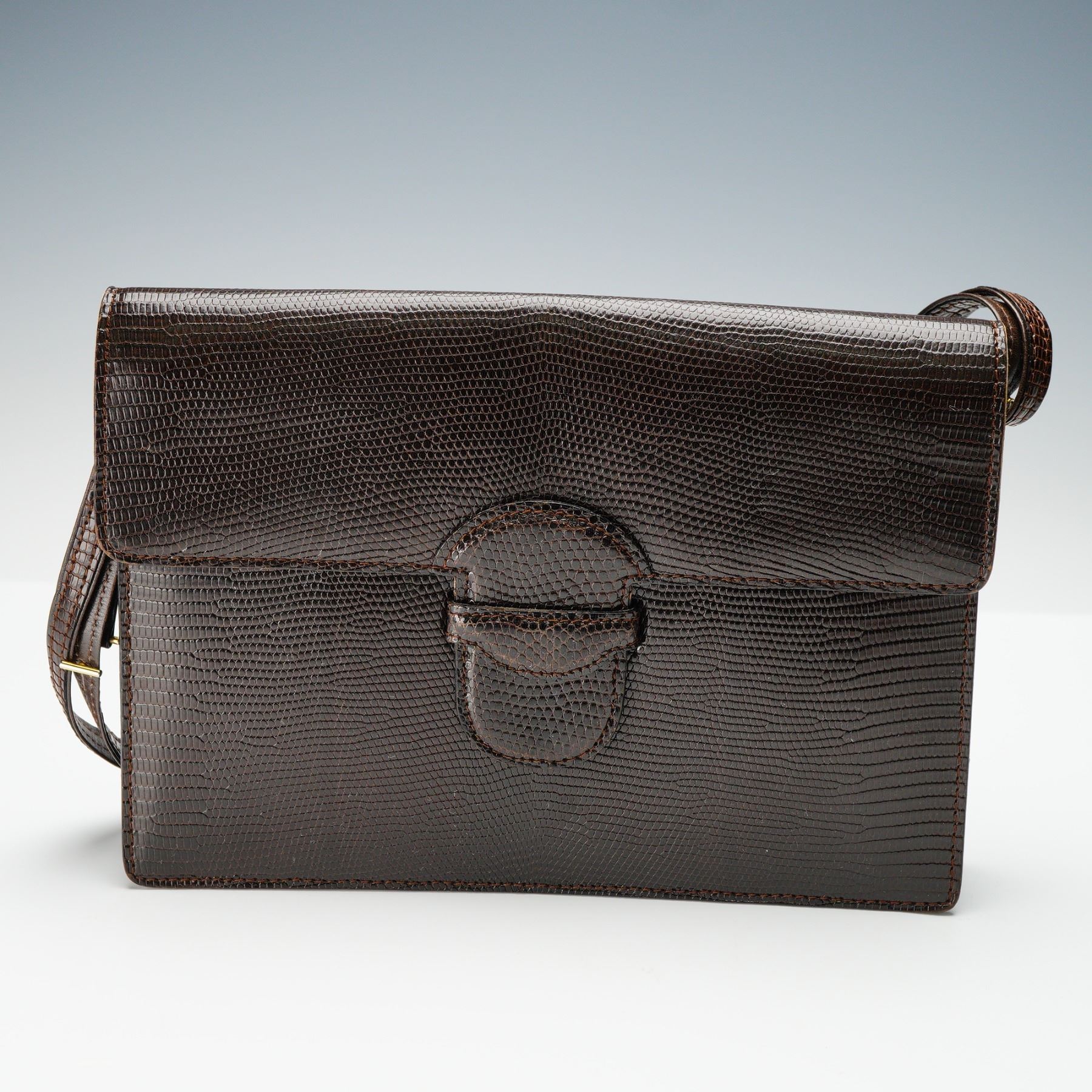 Lederer de Paris, Brown Lizard Embossed Leather Shoulder Bag