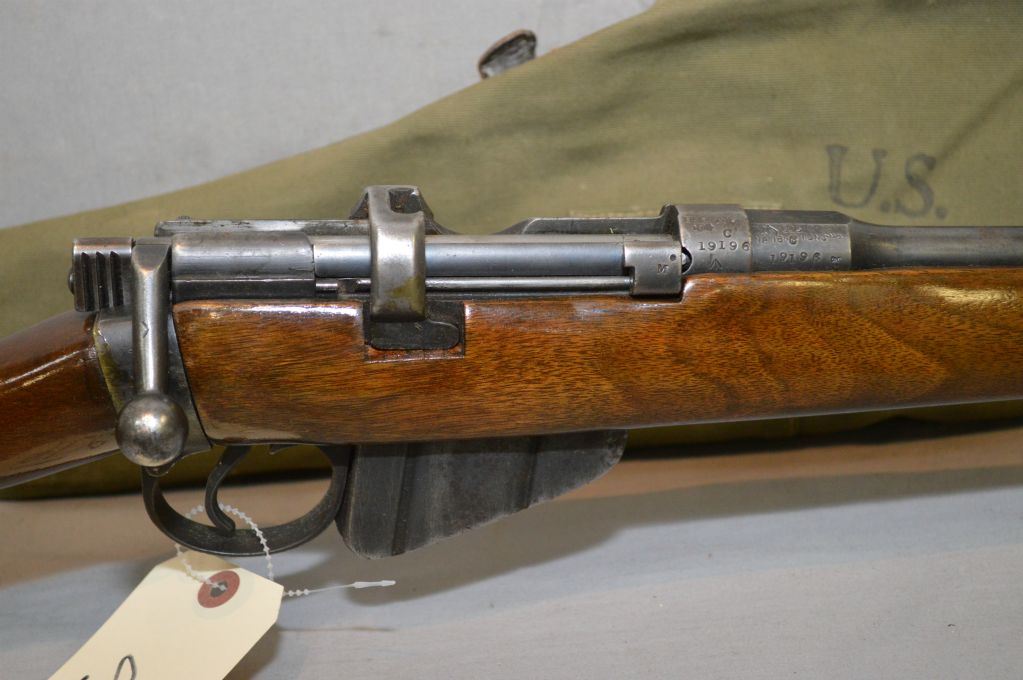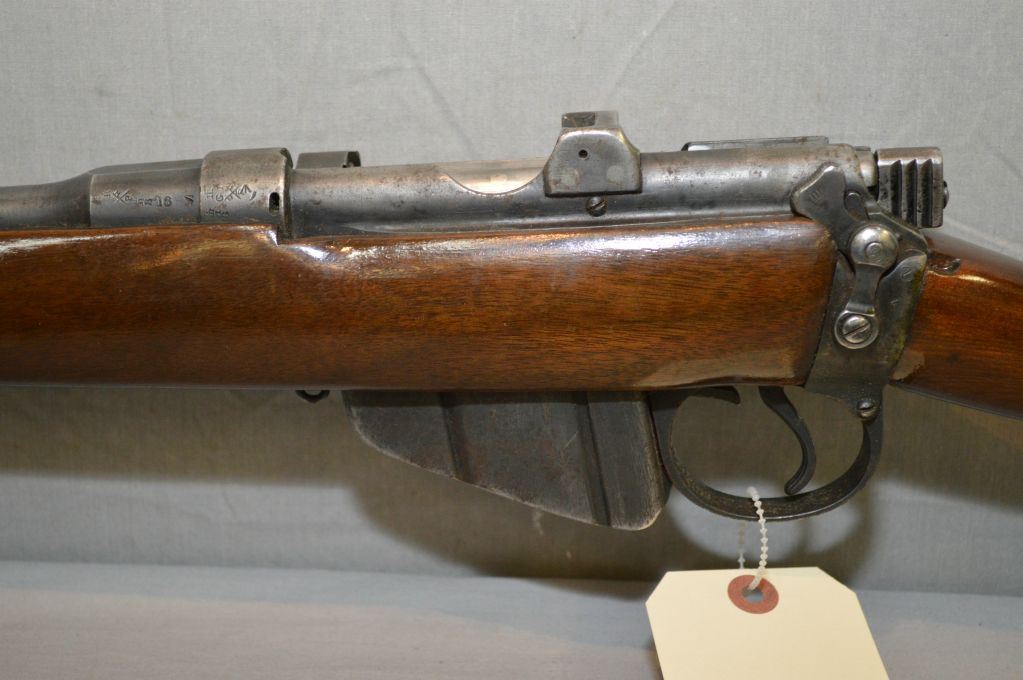 Lee Enfield ( B.S.A. Co Dated 1916 ) Model No 1 MK III* .303 Brit cal Mag Fed Bolt Action Sporterized Rifle w/ 25 1/4" bbl [ fading blue finish, barrel sights, varnished sporterized wood w/ brass butt plate, sling swivels, w/ U.S. Marked green canvas gun case ] Ser # C19196