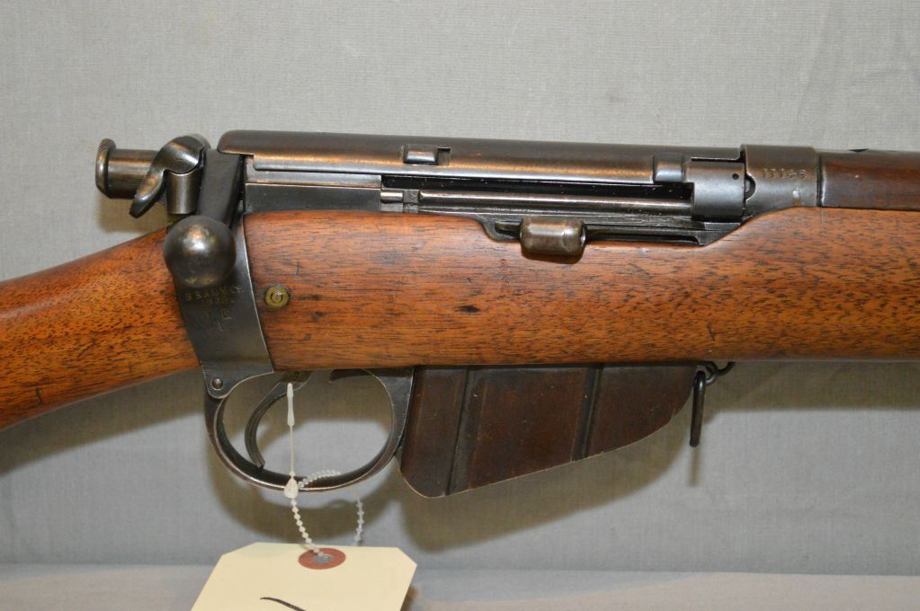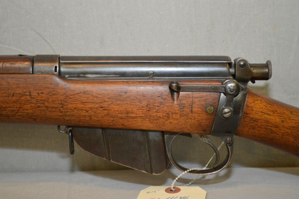 Lee Enfield ( B.S.A. & M Co.) Dated 1896 Model No 1 Mark 1 .303 Brit cal Mag Fed Bolt Action Full Wood Military Rifle w/ 30 1/4" bbl [ blue finish,barrel sights, also side receiver peep sight, etc. , dust cover, good cartouche, marked M & D above, three sling swivels, mag that can be attached, missing the cleaning rod (53) ] Ser # 11146