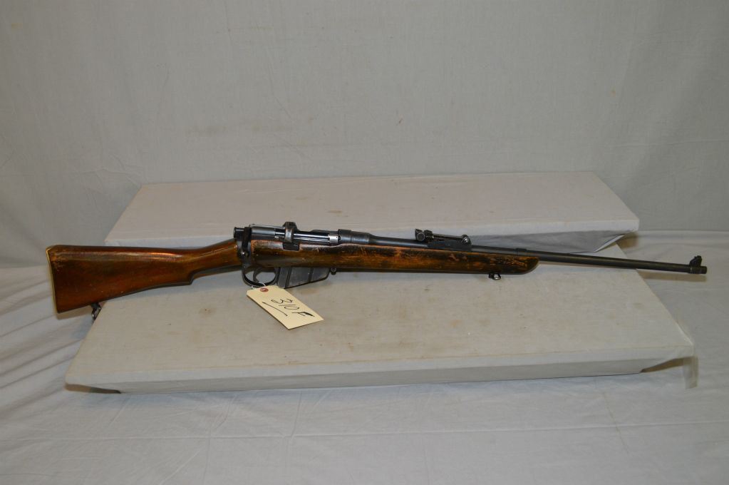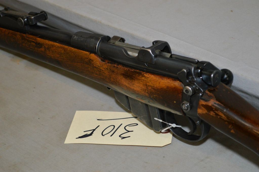 Lee Enfield ( BSA ) Dated 1917 No 1 MK III* .303 Brit Cal Sporterized Rifle w/ 25 1/4" bbl [ blued finish, barrel sights, mismatched numbered bolt, good sporterized wood w/flaking varnish, repaired by heel of brass butt plate w/trap, sling swivels ] Ser # H11953