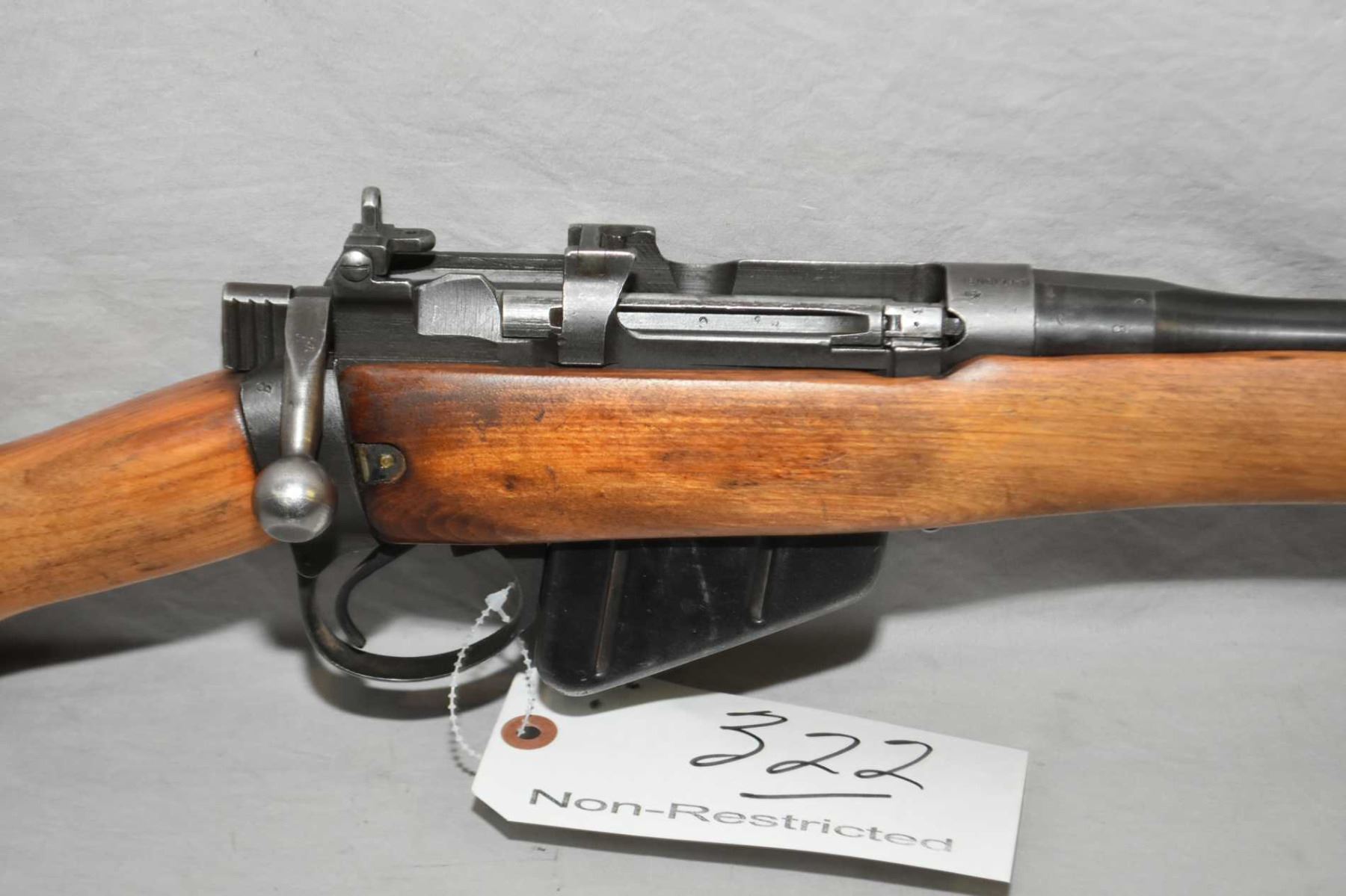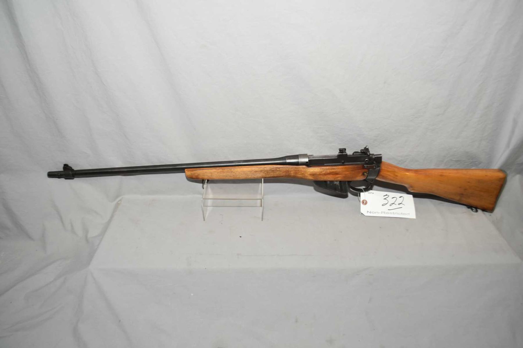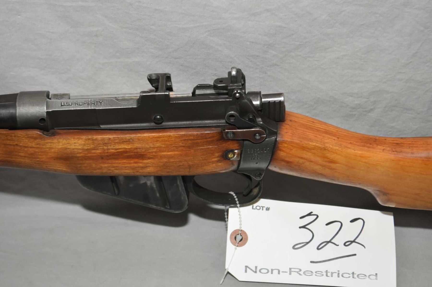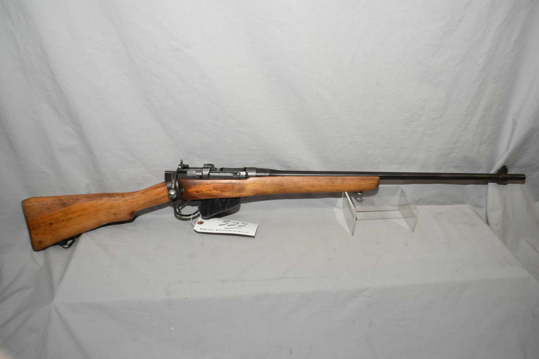 Lee Enfield By Savage Model No 4 Mark I Marked U.S. Property .303 Brit Cal Sporterized Rifle w/ 25 1/4" bbl [ fading blue finish, barrel sights, matching numbered bolt, Dated 1942, good sporterized wood, with sling swivels, metal butt plate w/trap ] Ser # 36C2417