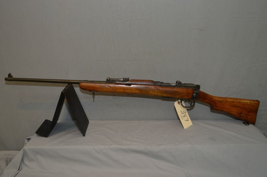 Lee Enfield Lithgow Model No 1 MK III * Dated 1941 .303 Brit Cal Sporterized Rifle w/ 25 1/4" bbl [ fading blue finish, fair sporterized wood w/one piece of top wood , sling swivels, brass butt plate w/ trap, stock markings including 1943 Date, matching numbered bolt, w/ five shot mag ] Ser # C76028