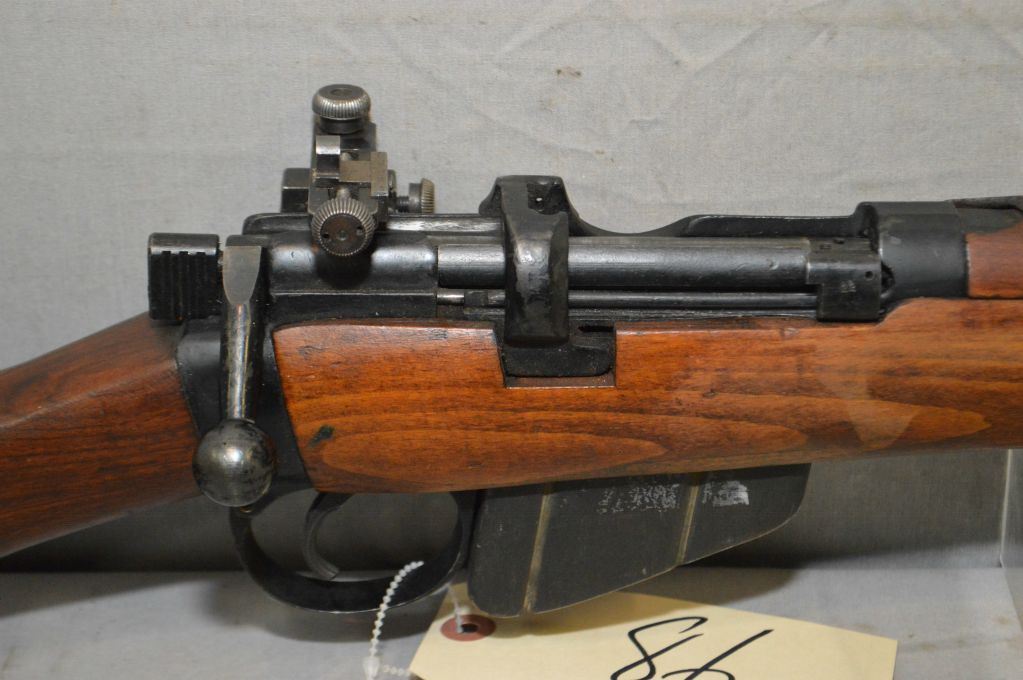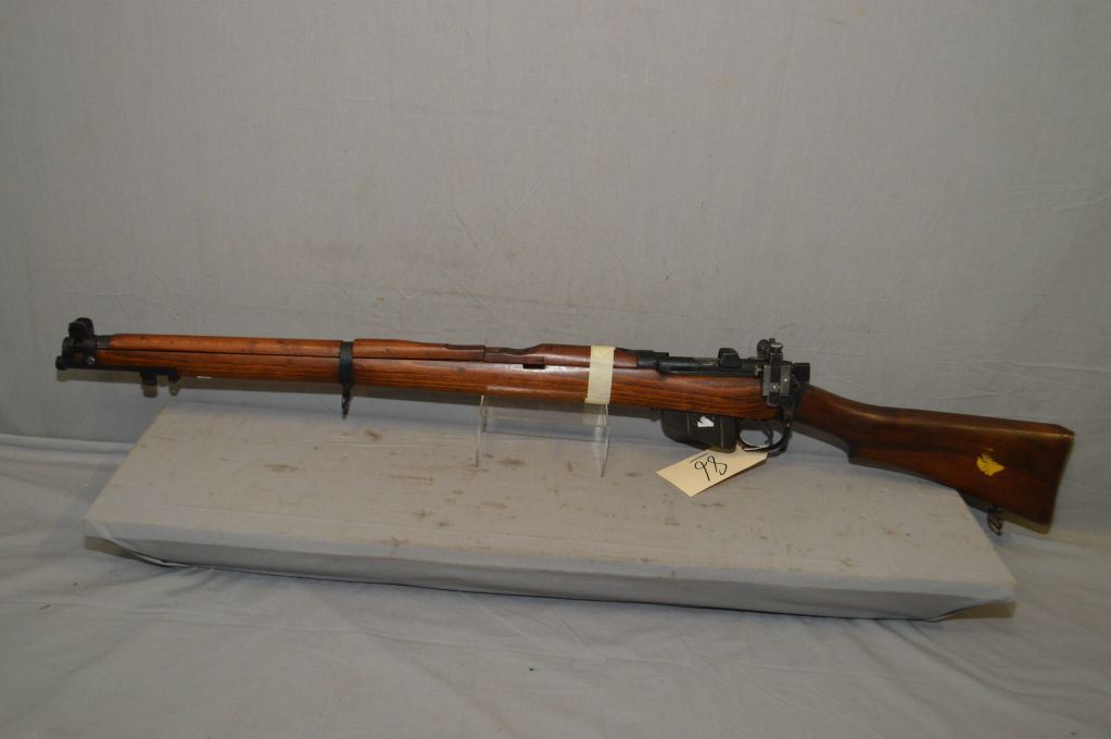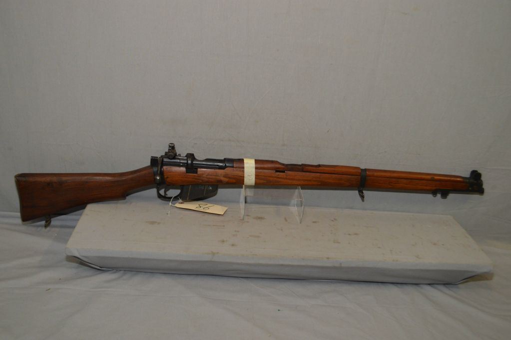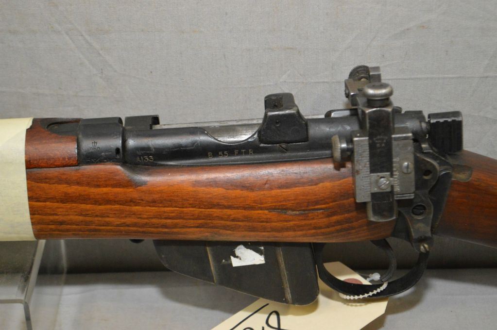 Lee Enfield Model No 1 Mark III ( Receiver marked B55 FTR ) .22 LR Cal Full Wood Military Bolt Action Rifle w/ 25 1/4" bbl [ blued finish, middle barrel sight removed, has barrel stamped BSA by receiver band, has receiver mounted Parker Hale 5A peep sight, proper .22 cal mag, two sling swivels, brass butt plate, various stampings on wood, including B5, 91, Broad Arrow GE, 26 Broad Arrow GE, matching numbered forewood, bolt, some yellow paint on left side of stock , matching numbered nose cap also ] Ser # A133
