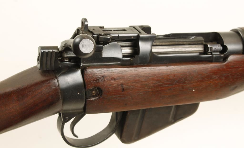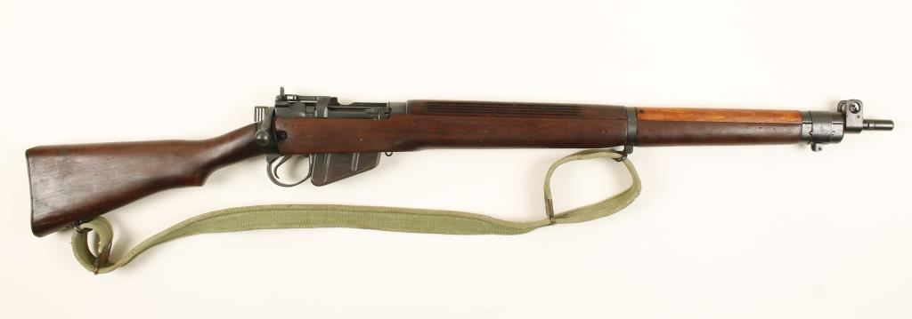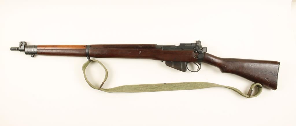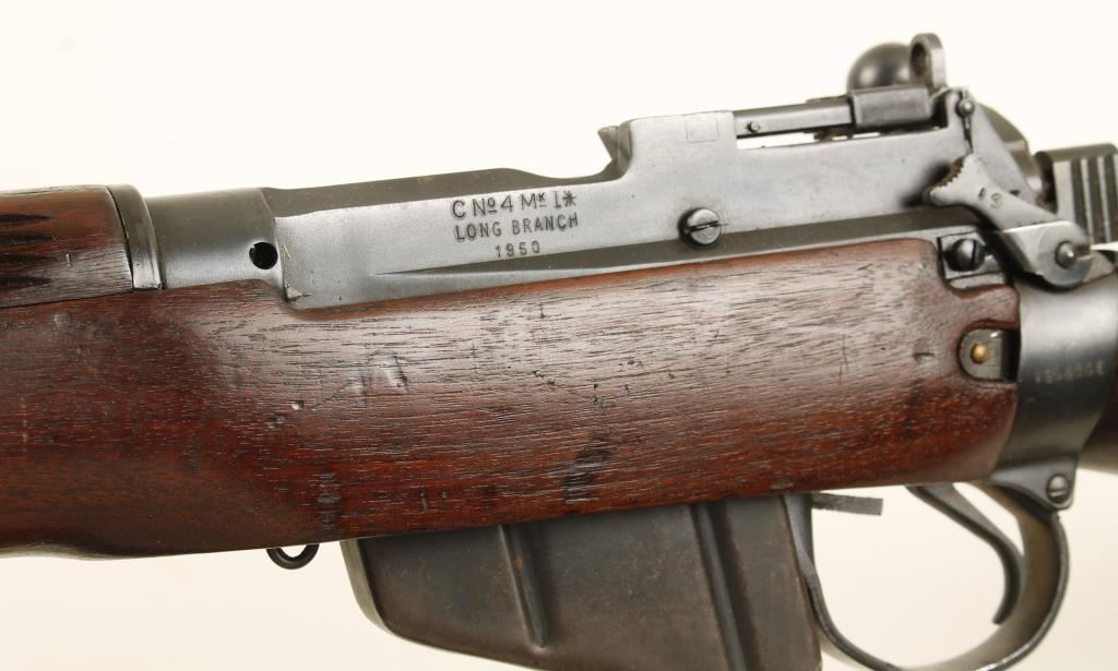 Canadian made at Long Branch Arsenal in 1950. Blued bolt-action military rifle with a 25-1/4" barrel, a web slng and one magazine. Bluing is good with edge wear and a few scratches. Wood is dark with a chip at the butt plate, dings and dents. Bore is shiny with rifling. Action is fine. Condition is good. *Modern Firearm*