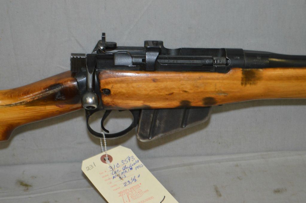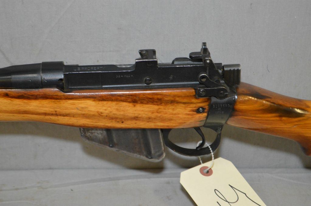 Lee Enfield ( Savage) No.4 MK I* Dated 1942 . 303 Brit Cal Sporterized Rifle w/ 23 1/2" bbl [ blued finish, receiver stamped U.S. Property, barrel stamped Made in England, good varnished sporterized wood, missing sling swivels, has the holes , non matching numbered bolt ] Ser # 31C3593