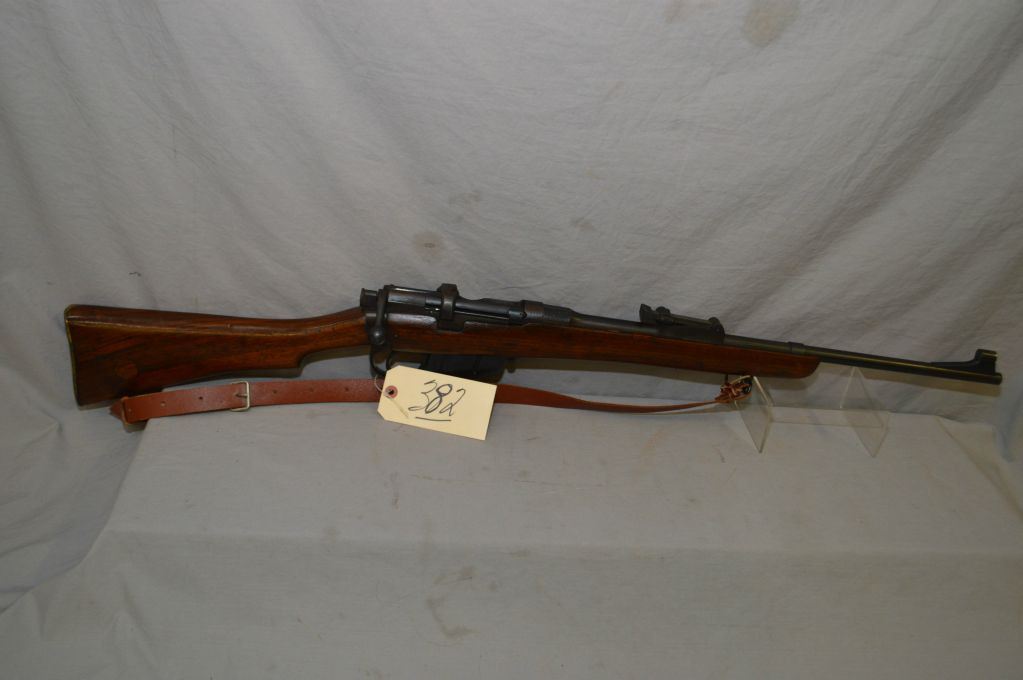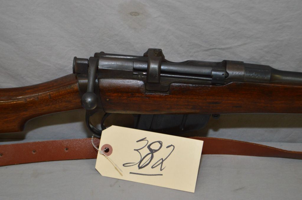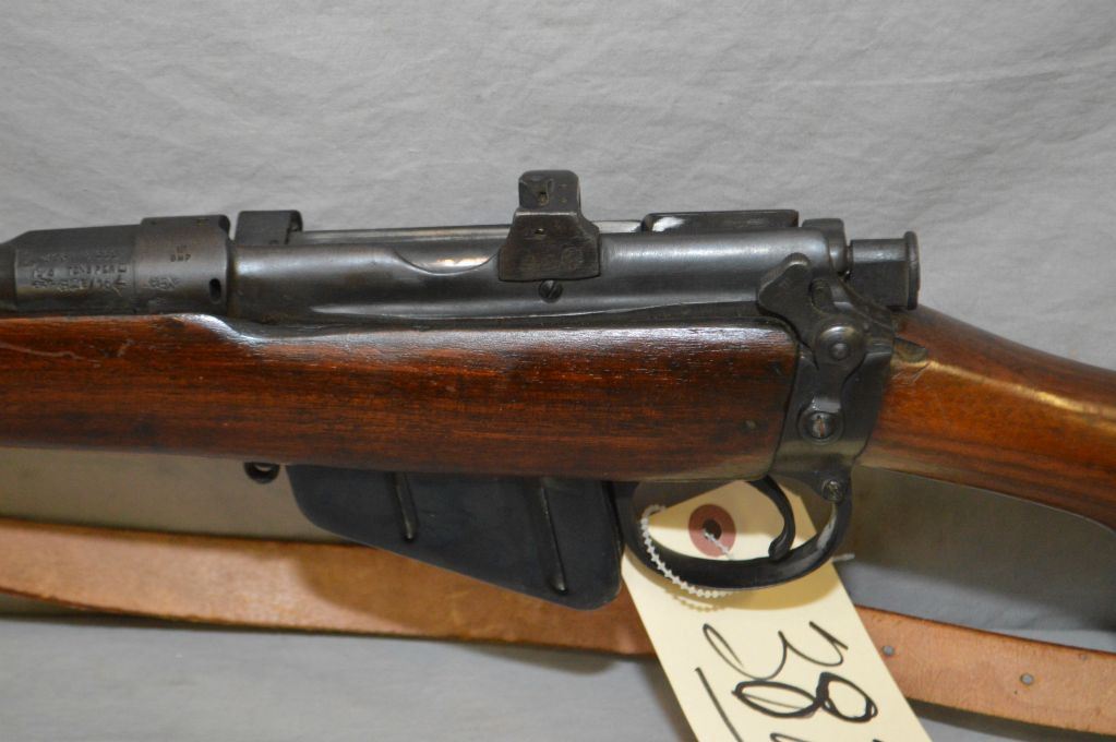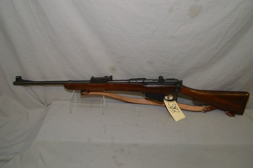 Lee Enfield ( Sht Le Dated 1917 FTR ) Model No. 1 Mk III* .303 Brit Cal Sporterized Mag Fed Bolt Action Rifle w/22" bbl [ blued finish, barrel sights, receiver tapped for scope bases, good sporterized wood with brass butt plate with trap, leather sling ] Ser # Z3776