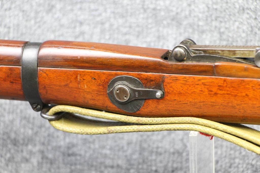 In issue condition. Magazine cut off. Added Parker Hale 5 A micro peep sight with adjustable Peep. MARTIN is stamped on the top of the chamber. Stock likely refinished. No rust.