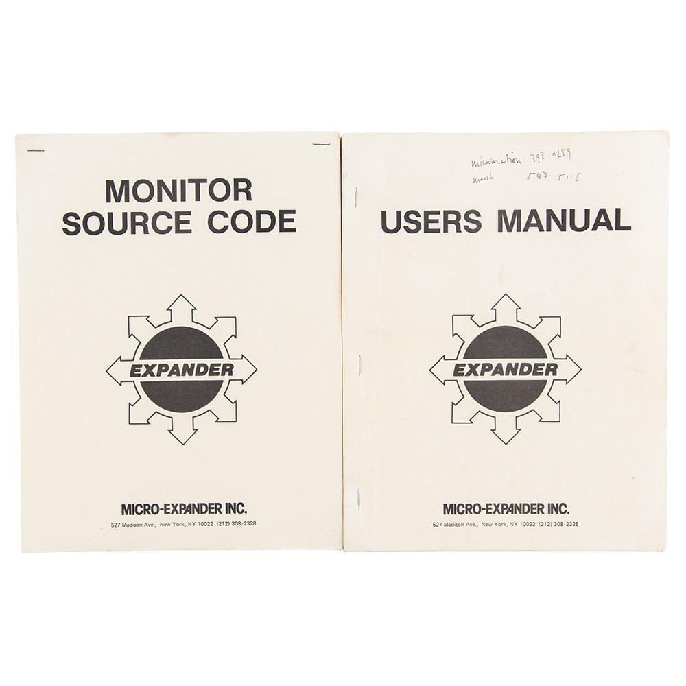 Two Expander manuals from the collection of personal computer pioneer Lee Felsenstein, an original member of the Homebrew Computer Club who designed multiple important early computers: the Intel 8080-based Sol-20, the first fully assembled microcomputer with a built-in keyboard and television output; and the Osborne 1, the first mass-produced portable computer. These manuals derive from his work on the Expander, built by Micro-Expander Inc., a 'slimline' computer with a built-in keyboard and number pad, measuring about 18 inches square and 4 inches thick. The system ran on a Z80A (3.58 MHz) processor, with 64K of RAM, color video output, and S-100 expansion bus (hence the name 'Expander').
