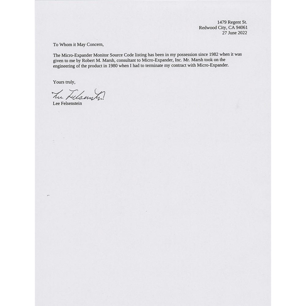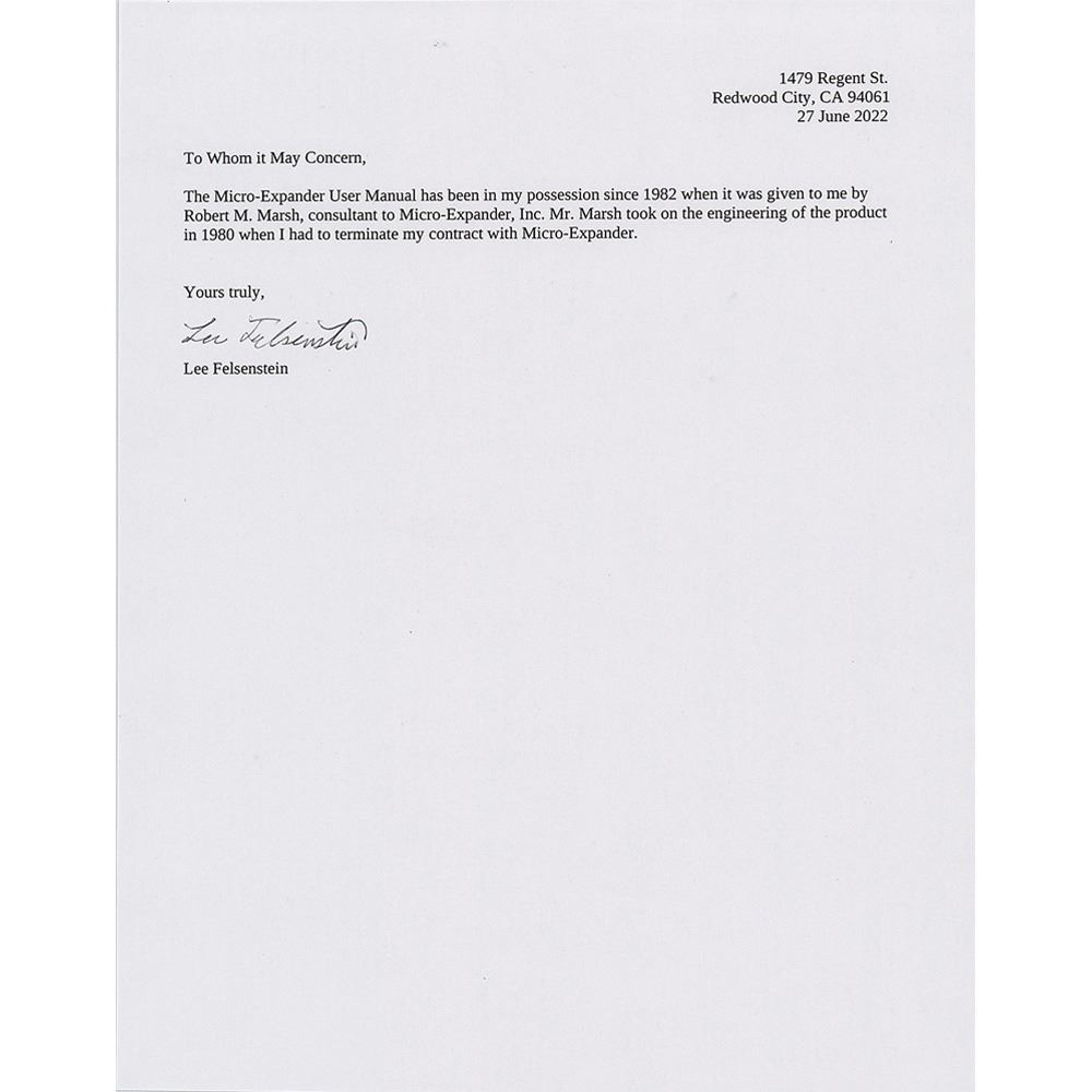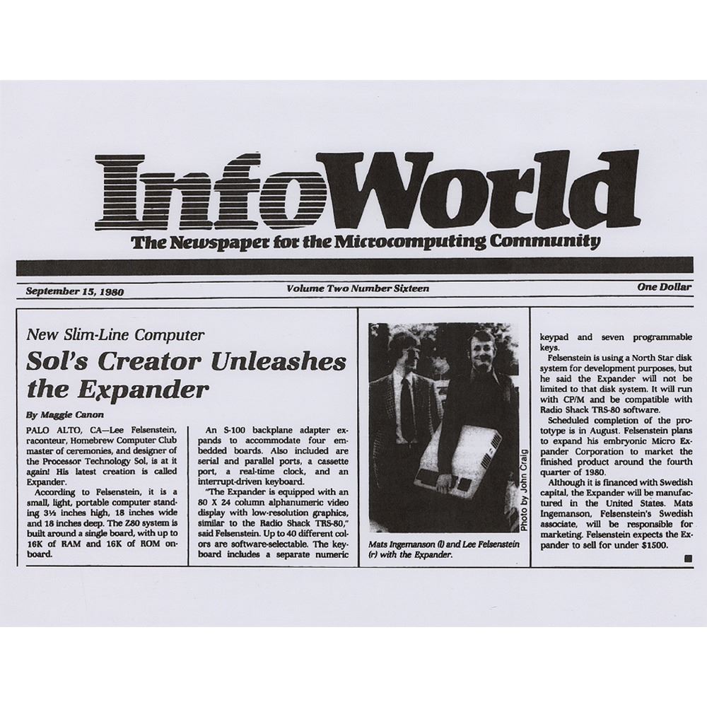 In overall fine condition, with light general wear. Accompanied by letters of provenance signed by Felsenstein and a modern printout of an InfoWorld newspaper article announcing the Expander in September 1980.