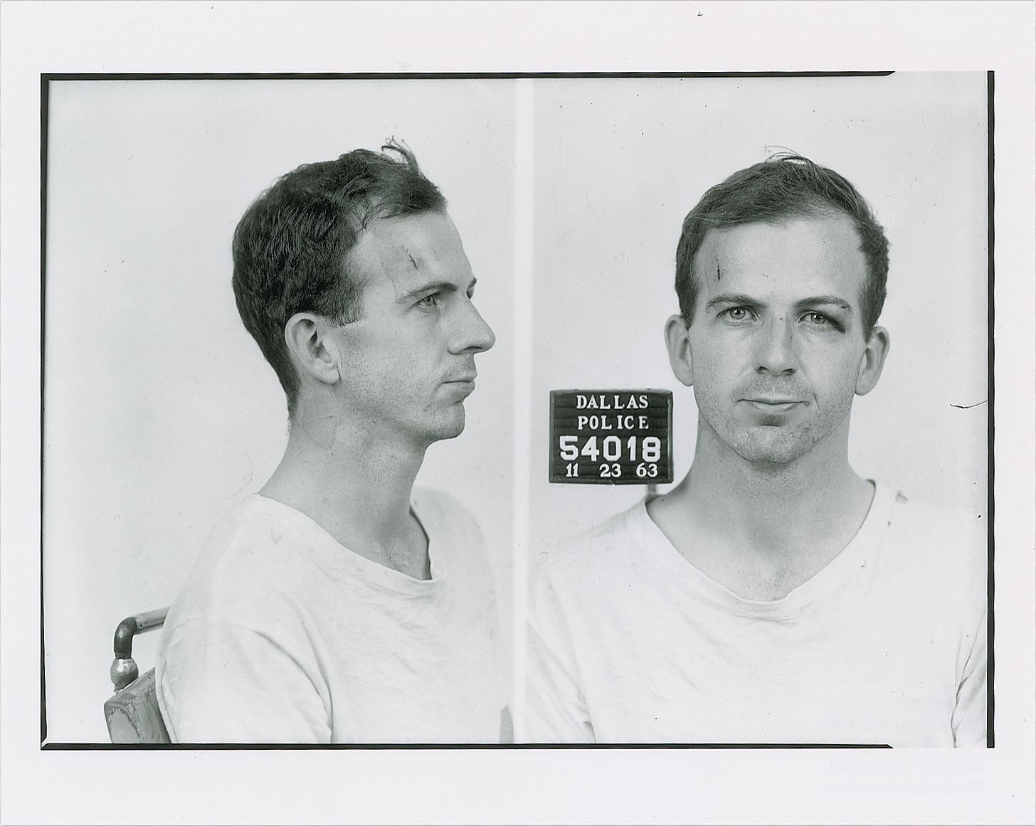 Limited edition 10 x 8 silver gelatin print of Lee Harvey Oswald's mug shots taken in Dallas, Texas, on November 23, 1963, following his arrest in connection with the assassination of President John F. Kennedy. The print, numbered 22/50, was produced from an original negative by University Archives. The negative was found in the papers of photography expert Cecil Wayne Kirk, and was used in connection with his testimony before the 1978 House Select Committee on Assassinations. In very fine condition.
